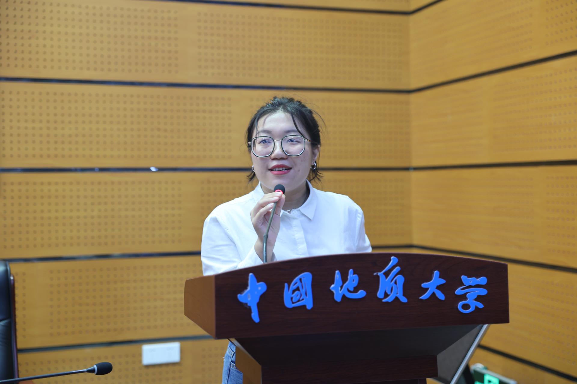往屆營員代表、材化學院研究生王琦發言。她分享了6年前參加地大科學營的美好經歷和在校的學習生活,希望各位營員通過此次活動,提前了解大學生活,感受學校的科研氛圍和文化內涵,將本次科學營中的所見、所感、所悟變成成長道路上的助推劑。