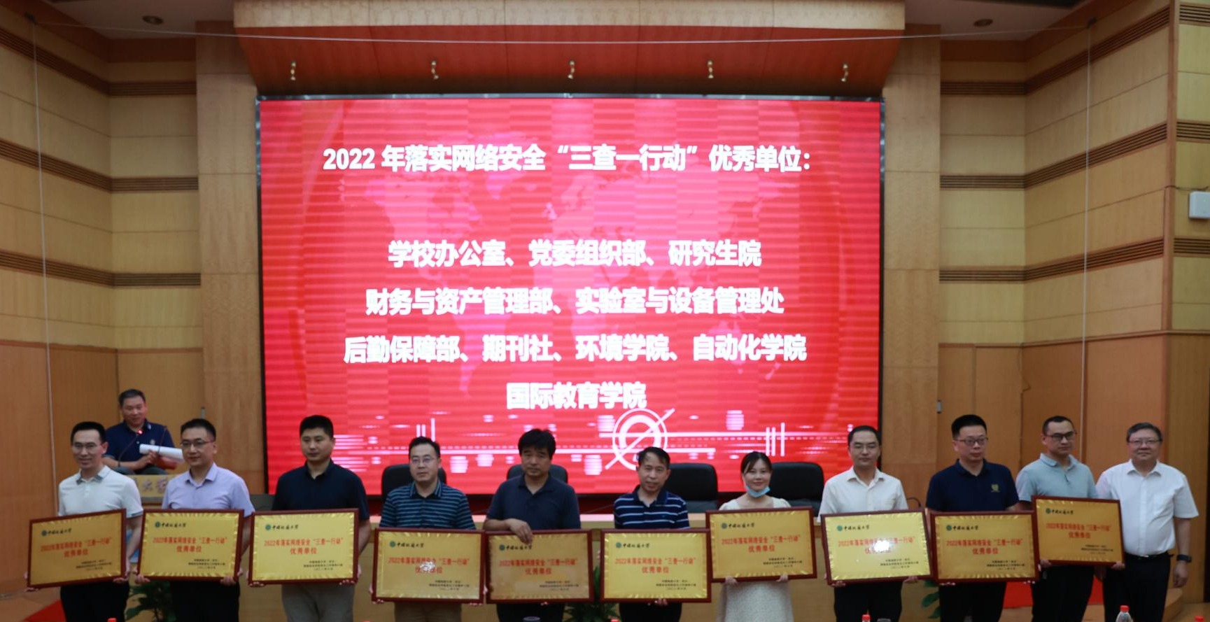 學(xué)校辦公室主任侯志軍宣讀了學(xué)校落實(shí)“三查一行動(dòng)”優(yōu)秀單位和“藍(lán)軍行動(dòng)”優(yōu)秀個(gè)人表彰決定。八個(gè)單位負(fù)責(zé)人現(xiàn)場(chǎng)簽訂了《網(wǎng)絡(luò)安全整改責(zé)任書(shū)》。
