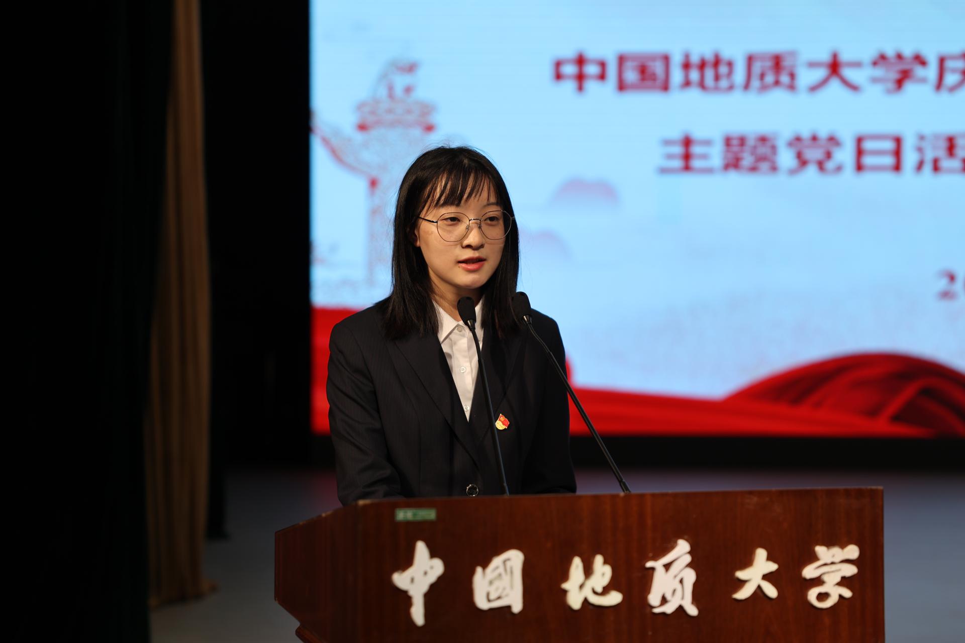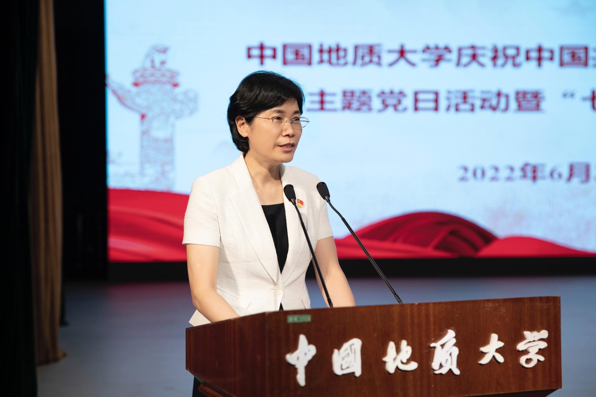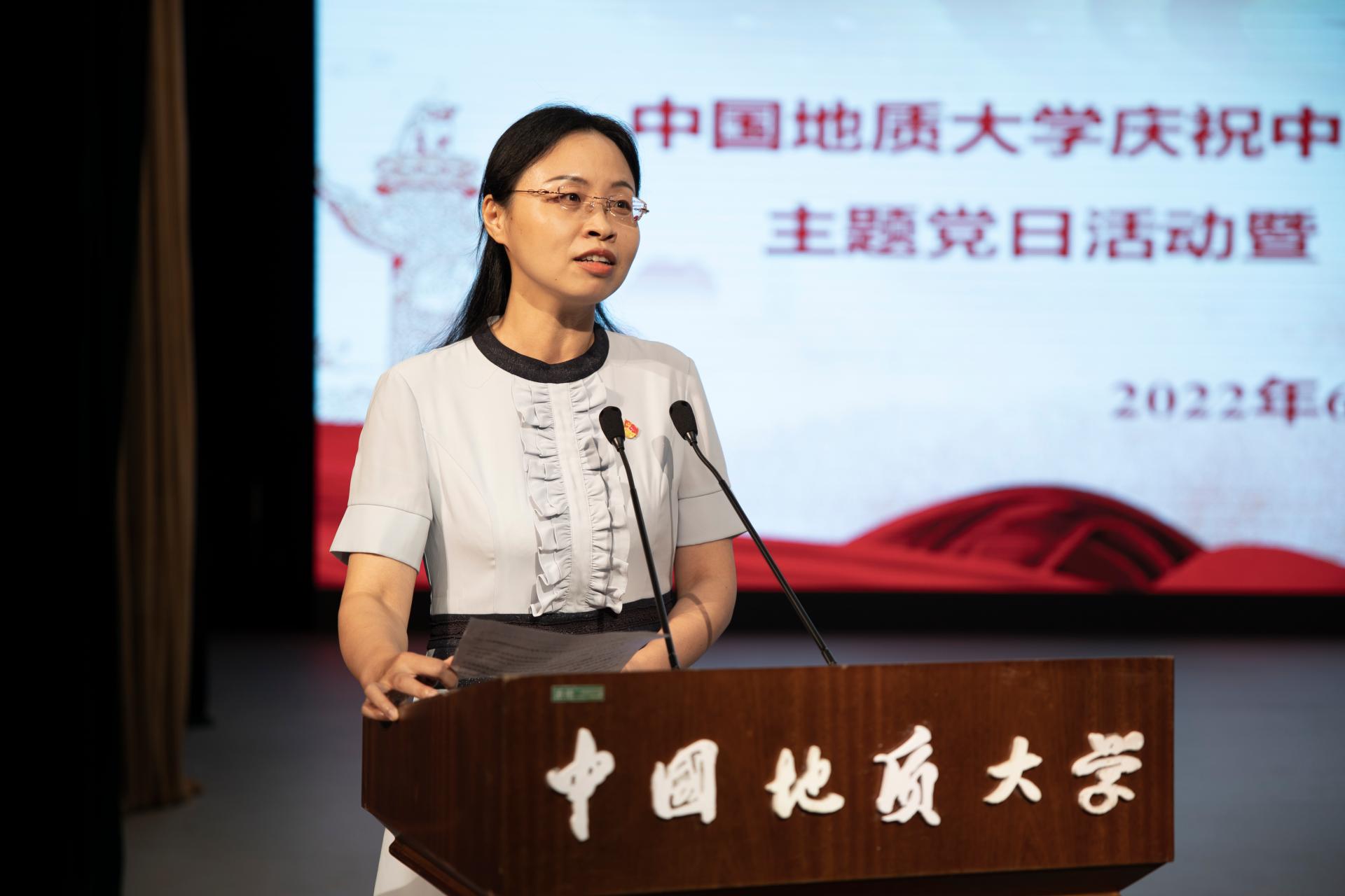 黃曉玫作總結講話。她回顧了黨的百年奮斗歷程和我校70年發展歷程,對一代又一代地大人不忘初心、砥礪前行、接續奮斗取得的成績給予高度評價。她說,黨的領導始終是我校各項事業不斷發展的根本保障。近年來,學校黨委帶領各級黨組織,持續落實新時代黨的建設總要求,貫徹新時代黨的組織路線,以《中國共產黨普通高等學校基層組織工作條例》為遵循,落實立德樹人根本任務,不斷強化“六個過硬”“五個到位”“七個有力”,以高質量黨建引領推動我校事業高質量發展,我校呈現出良好的發展態勢。她希望,今天的地大人,要像地大前輩一樣,胸懷天下、勇挑重擔,將“地大夢”融入中華民族偉大復興的“中國夢”,堅持更高水平開放、更深層次改革、更高質量創新,克服前進道路上的困難和挑戰,推動事業不斷向前發展。
