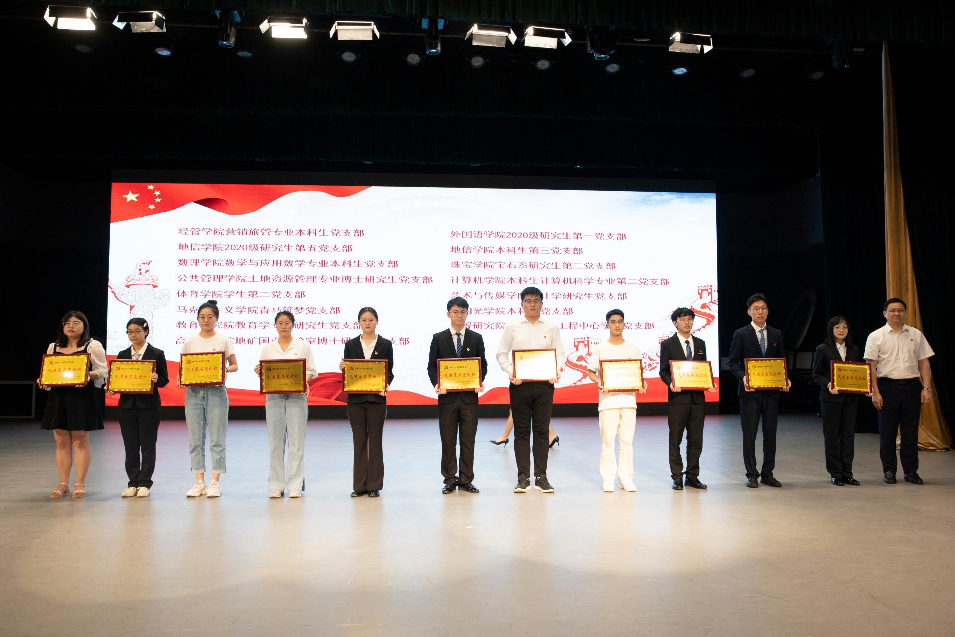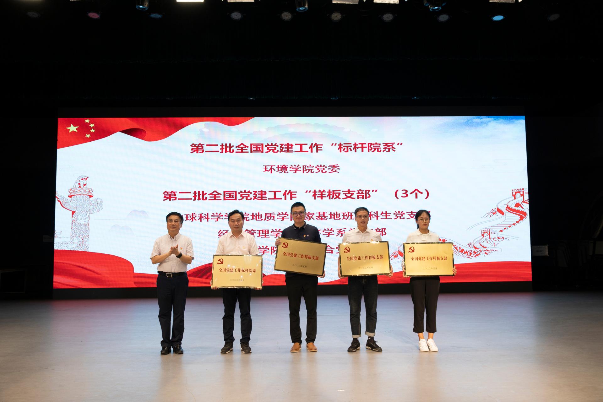 王焰新為環境學院黨委、經濟管理學院經濟學系黨支部、體育學院學生聯合黨支部、地球科學學院地質學國家基地班本科生黨支部等4個第二批全國黨建工作“標桿院系”“樣板支部”授牌。