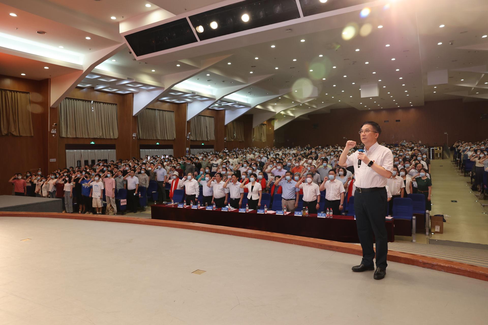 黨員重溫入黨誓詞暨新發展黨員入黨宣誓,校長、黨委副書記王焰新院士領誓。