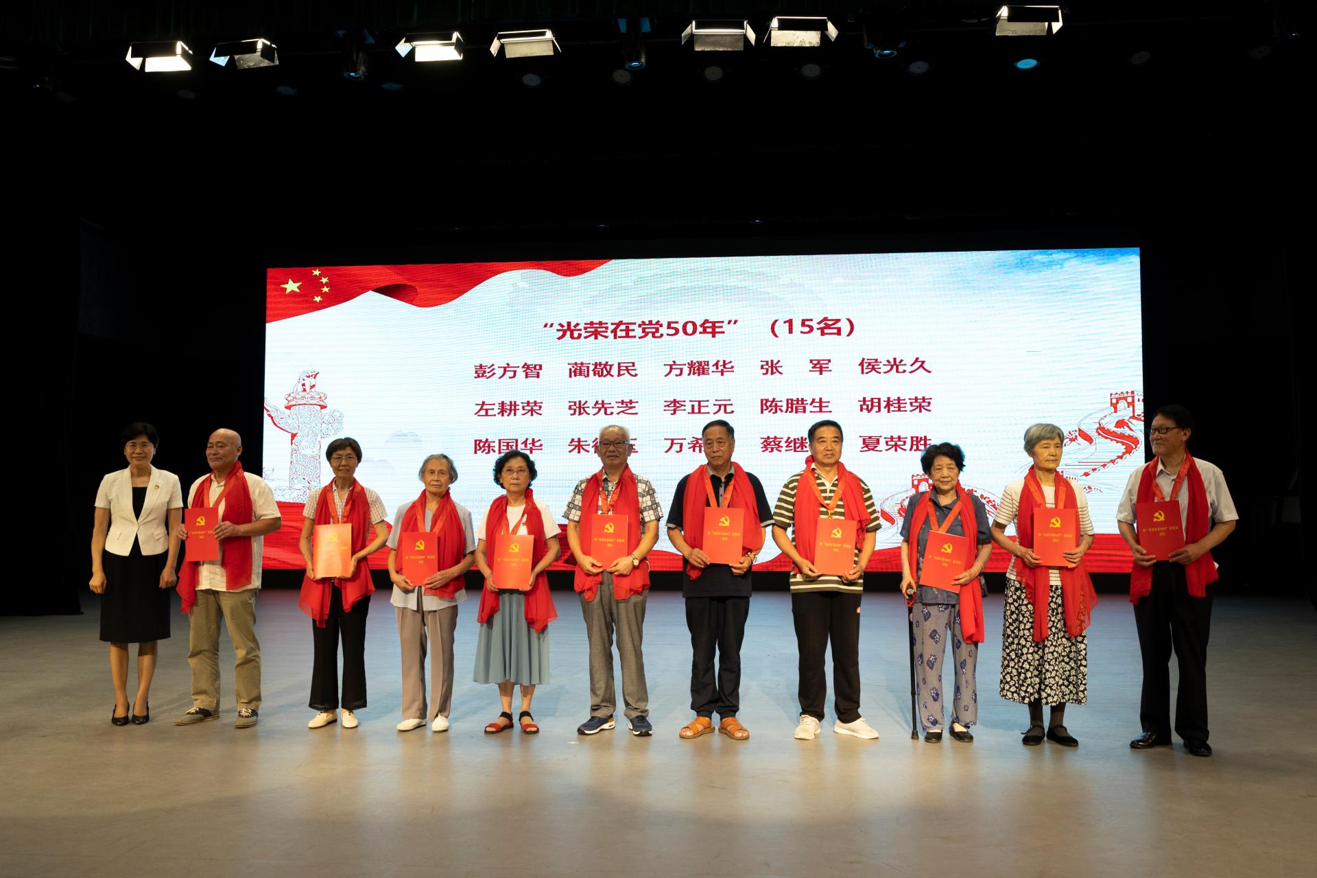 校黨委書記黃曉玫為“光榮在黨50年”老黨員代表頒發紀念章。