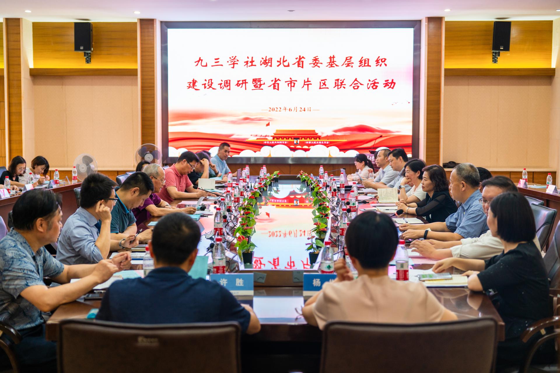 地大新聞網(wǎng)訊(通訊員 王艷平 江豐偉)6月24日,九三學社湖北省委基層組織建設調(diào)研暨省市片區(qū)聯(lián)合活動在我校舉行。九三學社湖北省委會副主委徐禮華、專職副主委付文芳、副主委陳蓉,秘書長蔡國斌、常委龔威等參加聯(lián)合活動,我校校黨委副書記唐輝明,黨委組織部、統(tǒng)戰(zhàn)部部長陳文武,黨委統(tǒng)戰(zhàn)部副部長曾希應邀出席座談會。九三學社湖北省委會光谷關(guān)山、珞珈山卓刀泉兩大片區(qū)18個基層組織和九三學社武漢市委、九三學社洪山區(qū)工委負責人參加本次聯(lián)合活動。九三學社湖北省委常委、九三學社地大委員會主委王倫澈主持座談會。