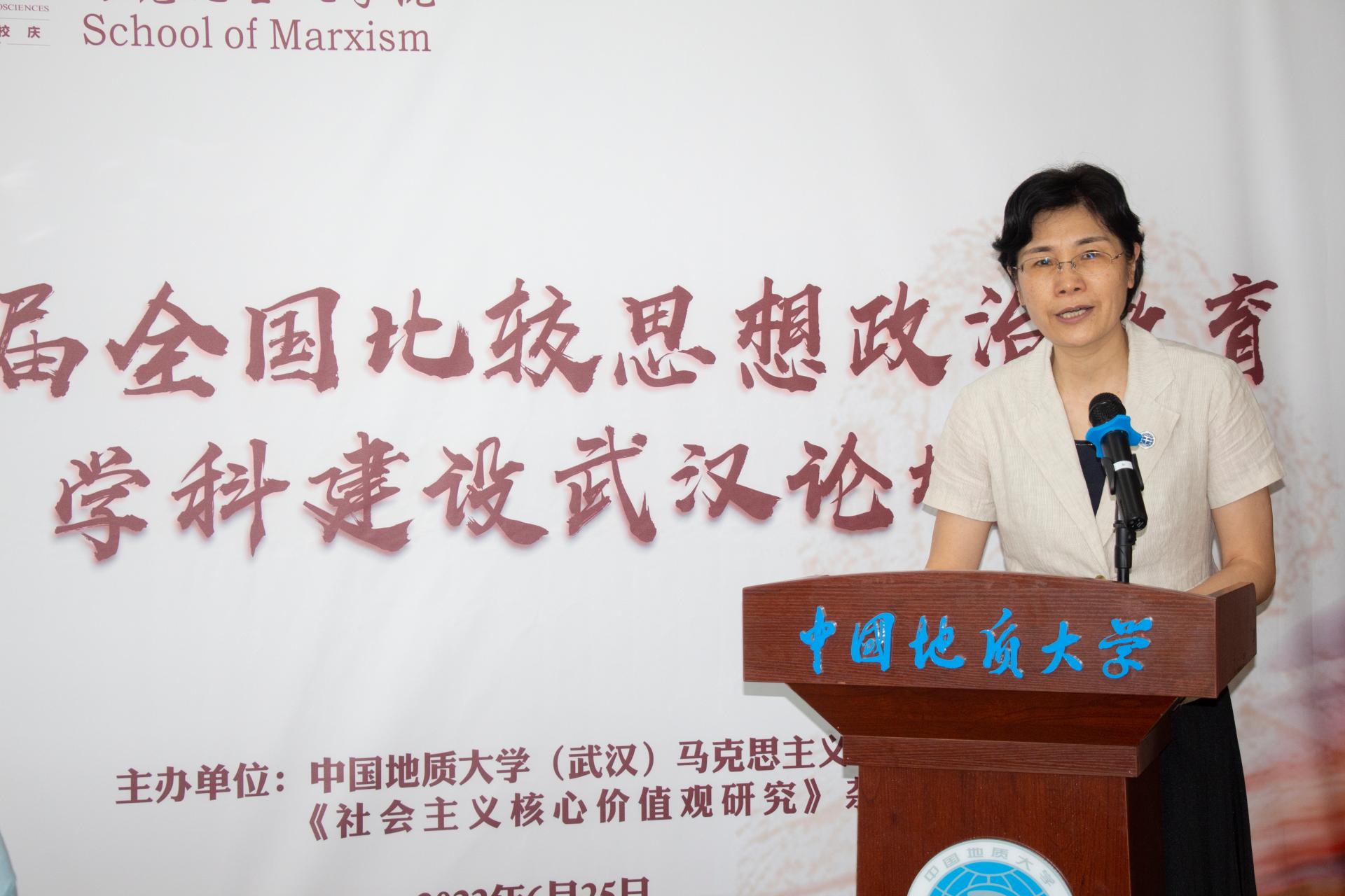 地大新聞網訊(通訊員 胡夢婷)6月25日,由我校馬克思主義學院、《社會主義核心價值觀研究》雜志共同主辦的第二屆全國比較思想政治教育學科建設武漢論壇,線上線下同步舉行。校黨委書記黃曉玫、原副校長傅安洲,清華大學文科資深教授、中央馬克思主義理論研究和建設工程首席專家、《社會主義核心價值觀研究》雜志主編吳潛濤,武漢大學珞珈杰出學者、中央馬克思主義理論研究和建設工程首席專家、國務院學科評議組召集人駱郁廷,以及來自武漢大學、東北師范大學、首都師范大學、華中師范大學、西南大學、北京外國語大學、廣州大學、四川師范大學、武漢工程大學、山西傳媒學院、我校等高校的專家教授、青年學者與會。來自全國高校的300多名師生,在線上參與本次會議。會議圍繞比較思想政治教育的前沿、熱點問題展開研討。