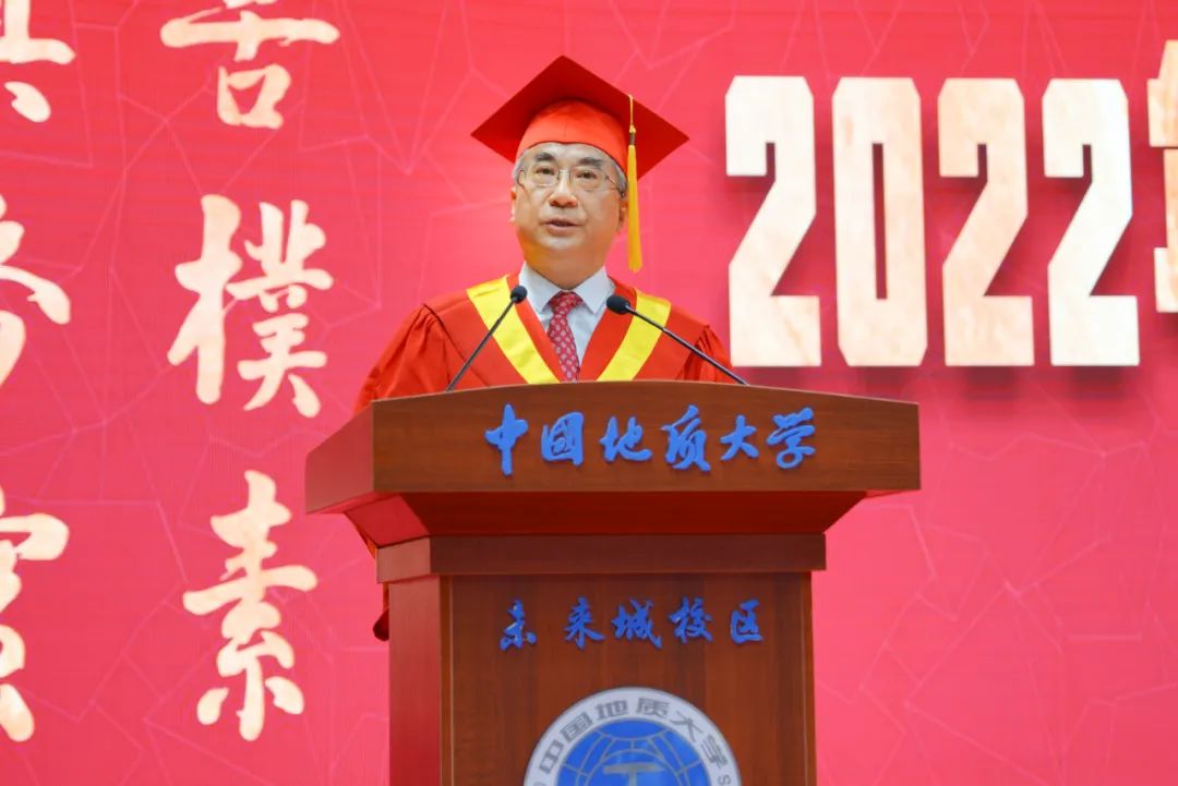 這幾年,你們在扎根向上、不斷成長的同時,學校和你們一樣只爭朝夕,絲毫不敢懈怠,錨定地球科學領域世界一流大學的目標,爬坡過坎、奮力前行:我們遷漢后二次創(chuàng)業(yè),建成未來城校區(qū)并投入使用,有效拓展了學校辦學空間,為這所偉大學校的事業(yè)長青奠定了新基石;我們聚焦國家需求,描繪了美麗中國·宜居地球的發(fā)展藍圖;我們持續(xù)優(yōu)化學科生態(tài),高質量達成首輪“雙一流”建設目標,高起點啟動新一輪“雙一流”建設任務;我們銳意進取,推動更深層次改革、更高水平開放,努力實現(xiàn)更高質量發(fā)展。我們不斷完善“三融合”本科人才培養(yǎng)模式,構建“三融三跨”的高質量研究生教育體系,就是為了供給更優(yōu)質的教育資源。我們推行主輔修制,就是想即使學校日子緊一點、老師辛苦一點,也要讓你們多學一點;我們嚴格論文查重、盲審、答辯等各環(huán)節(jié),就是想即使論文虐你千百遍,也要讓你們的過往和經歷都能經受得住歷史的檢驗;我們堅持“嚴在地大”,就是想現(xiàn)在你們多吃點苦,以后盡量少遭些罪。我知道你們期待:通識教育課程可選擇再多一點、實踐教學再強一些、上課安排離寢室再近一些、住宿生活條件再好一點、文化體育設施再齊全一些、出入校門再便捷一些……這些將鞭策我和我的同事們努力、再努力一些!從今天起,我們會不斷提醒我們自己,地大校友又新增了7000多雙眼睛將時刻盯著我們!