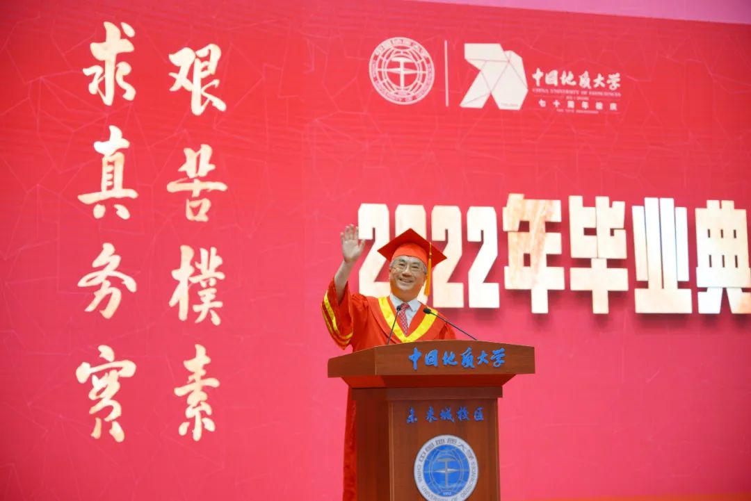 希望同學們秉承歷史榮光,贏得更大光榮。如果說全球的大學組成一條星河,在我心中,地大就是其中最亮、最美的那顆星。70歲的地大歷經滄桑,卻仍舊青春鼎盛、熠熠生輝。在祖國最需要的時候,老一輩革命家、紅色科學家挺身而出,弘“動地”之志,傳“工學”之道,展“新型社會主義理工科大學”之愿,建起了新中國最早的高等地質教育體系,為百業(yè)待舉的新中國建設做出重大貢獻。在櫛風沐雨、艱苦創(chuàng)業(yè)、開疆擴土中,地大人踐行著“胸懷大局、初心如磐、艱苦創(chuàng)業(yè)、勇攀高峰”的“南遷精神”;在攀登自然高峰、科學高峰、人生高峰中,地大人彰顯了“扎根中國、胸懷天下、勇攀高峰、追求卓越”的攀登精神,匯聚成愛國、報國、強國的強大精神力量。這些精神“富礦”,使得學校始終站在大學精神之高位,成為我們最寶貴的育人資源。前不久,我國著名的地球化學動力學家、礦床地球化學家、地質教育家於崇文先生永遠的離開了我們,但他一生踐行的“學習思考、鍥而不舍、探索創(chuàng)新、攀登不息”16字學習工作總結,不但解開了地大人書寫七秩榮光的精神密碼,而且留給我們一筆彌足珍貴的精神財富。當前,我們正處在建設地球科學領域國際知名研究型大學關鍵階段。站在70年辦學的新起點,我們比任何時候都需要這些精神“食糧”補精神之鈣,比任何時候都需要秉承歷史榮光闖發(fā)展新路。我們要一代接著一代干、一代要比一代拼、一代更比一代強。希望同學們做“不斷線的風箏”,飛躍山河湖海,始終牢記自己“地大人”的身份。做“不消散的電波”,保持永遠蓄電、永不斷電的狀態(tài);做“不褪色的 CUGer”,始終不改“艱苦樸素,求真務實”的本色,不斷擦亮地大人的精神底色,不斷增添大學精神的新亮色,為母校、為國家努力贏得新的更大的光榮。