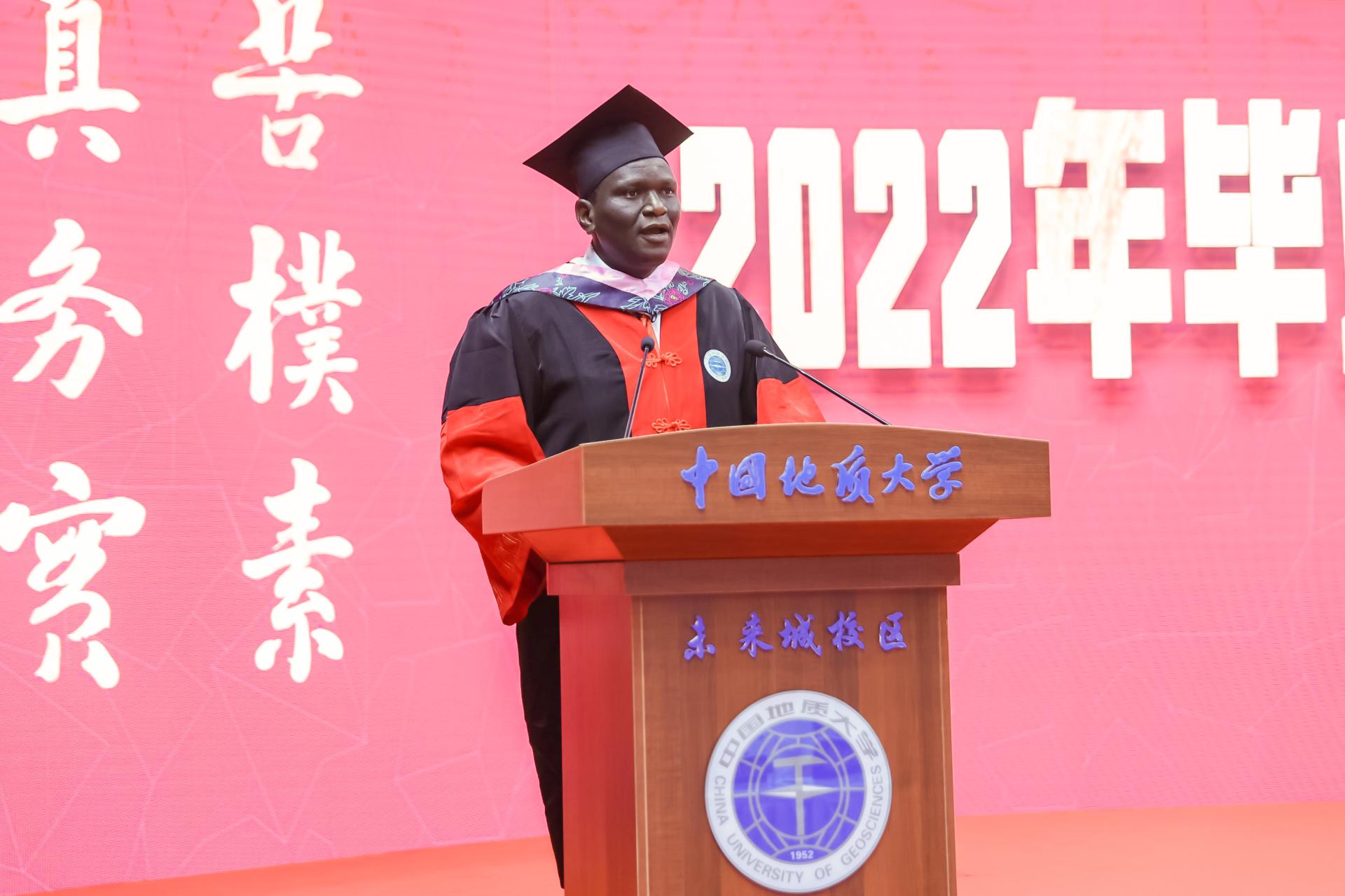 留學生代表、公共管理學院土地資源管理專業博士研究生大明同學發言。他說,八年沉淀了太多值得回味的地大故事,懷念在實驗室和大家一起忙碌、在圖書館里閱讀、食堂窗口阿姨熱情地問“想吃什么”的日子。作為抗疫“鋼鐵俠”的一份子,他會把中國的大愛無私、中國文化的博大精深帶回去,把美好的中國故事和溫暖的地大故事分享給整個世界。