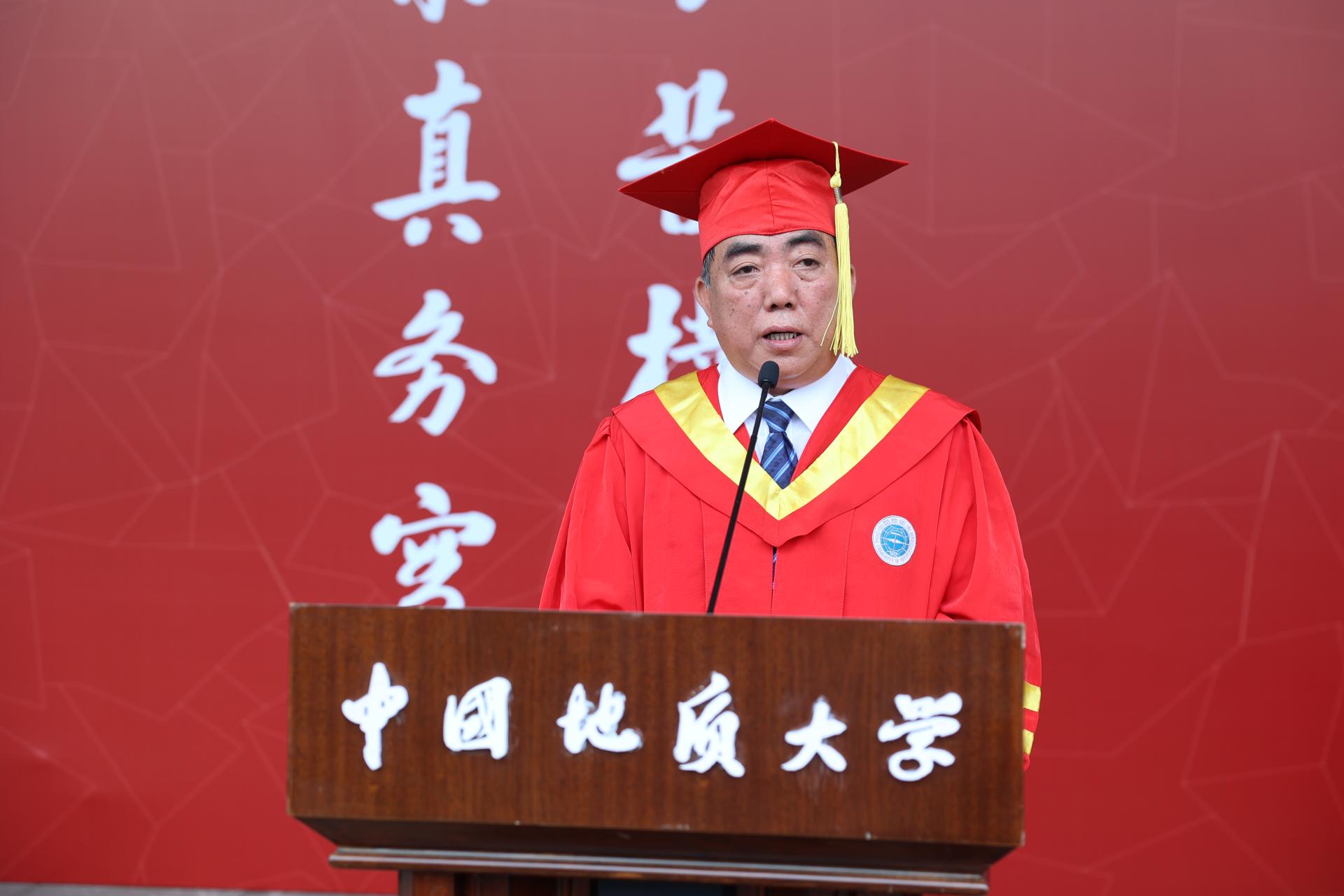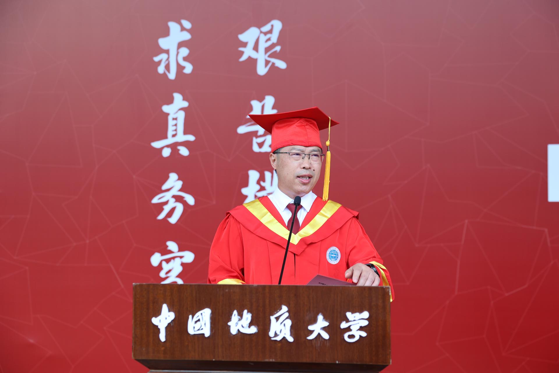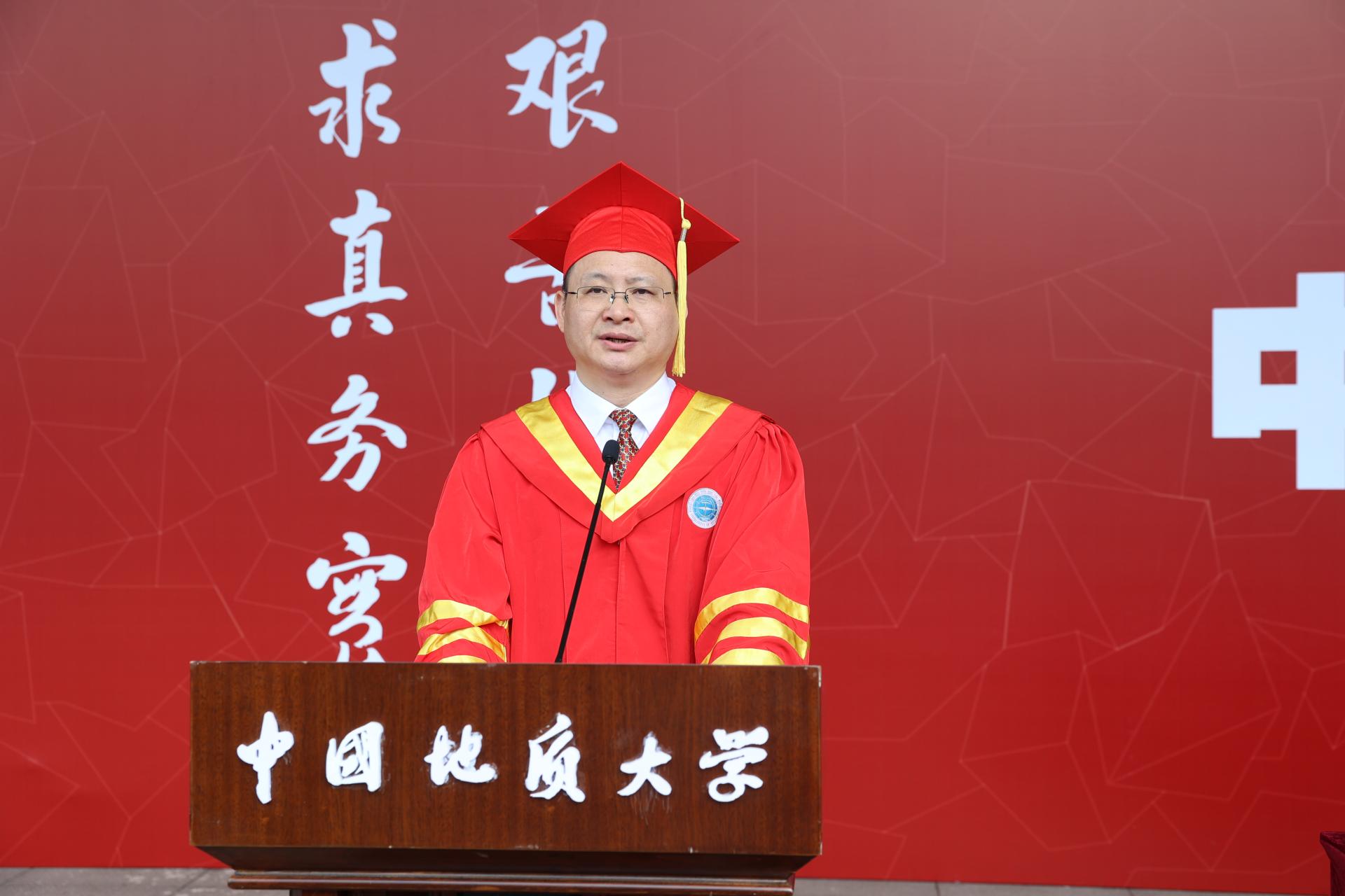 王焰新叮囑即將奔赴星辰大海的畢業生們,“榮光源自挫折,挫折孕育榮光”,挫折,是苦難,亦是磨礪。它是阻礙成功之路的“坎坷”,更是通往成功之路的“階梯”;它對弱者是“絆腳石”“泄氣閥”,對強者卻是“磨刀石”“加油站”。正如洪流奔涌,在島嶼、暗礁處方能激起美麗的浪花。“征途漫漫,挫折常有而信念不移;星辰大海,道阻且長但奮斗則至”。他希望同學們做“不斷線的風箏”,飛躍山河湖海,始終牢記“地大人”身份; 做“不消散的電波”,保持永遠蓄電、永不斷電的狀態;做“不褪色的 CUGer”,始終不改“艱苦樸素,求真務實”的本色,不斷擦亮地大人的精神底色,不斷增添大學精神的新亮色,為母校、為國家努力贏得新的更大的光榮。他希望同學們守初心、擔使命,踐行“一心愛國,奮斗一生”的誓言,秉持“為公與修己”的大道情懷、涵養“高貴與謙遜”的優良品格,領悟“偉大與平凡”“幸福與磨難”的人生真諦,在“遠航與駐望”中成長為一名“精致與格局”并舉的新時代青年,把“大志向”與“小幸福”落實到崗位上,在奮斗中綻放絢麗光彩,跑出當代青年的最好成績。