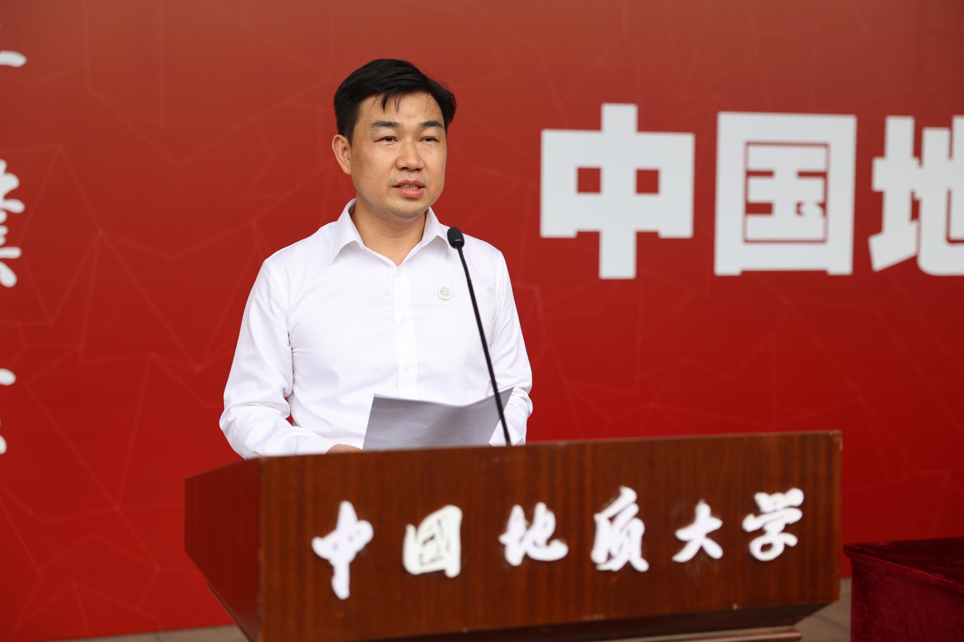 校友代表、中誠信集團副總裁、經濟管理學院會計學專業2002屆畢業生袁剛發言。他與畢業生們分享了畢業二十年來的心得體會:畢業生們初入職場,面臨身份的轉變,會有迷茫和痛苦,但要記得堅持,困難終會過去;用心做好每件事,學會竭盡全力把小事辦好、辦實,才有機會成就大事、成就未來。他希望畢業生們循著夢的聲音,踏遍山河萬里,不負地大長情。