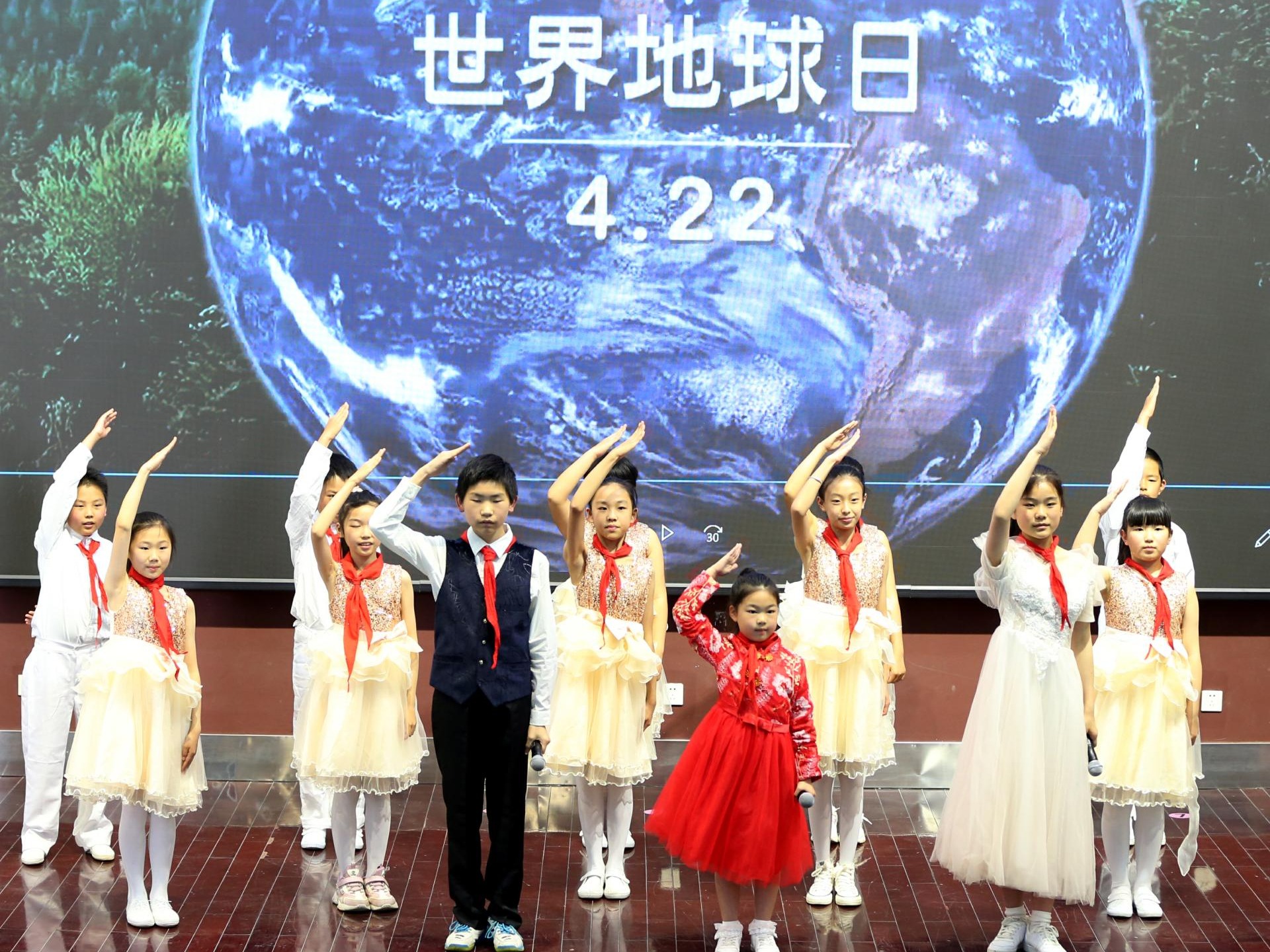 在第53個世界地球日主題宣傳周活動啟動儀式上,小學生進行科普舞臺劇表演。 王俊芳 攝