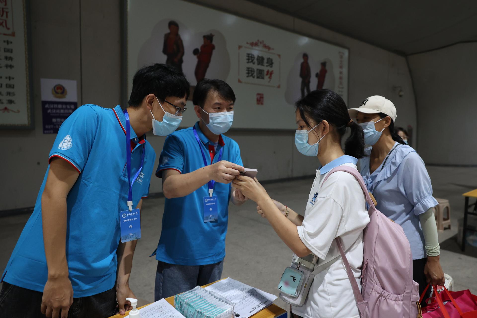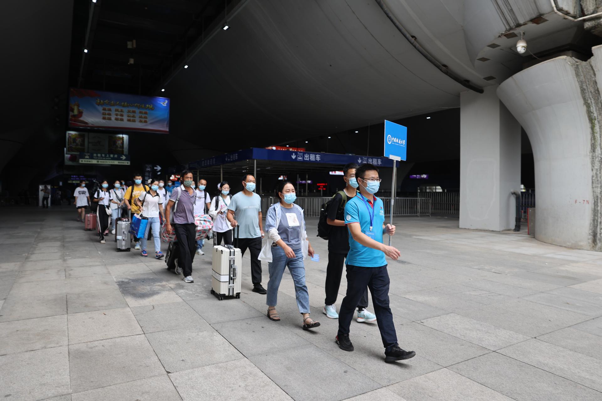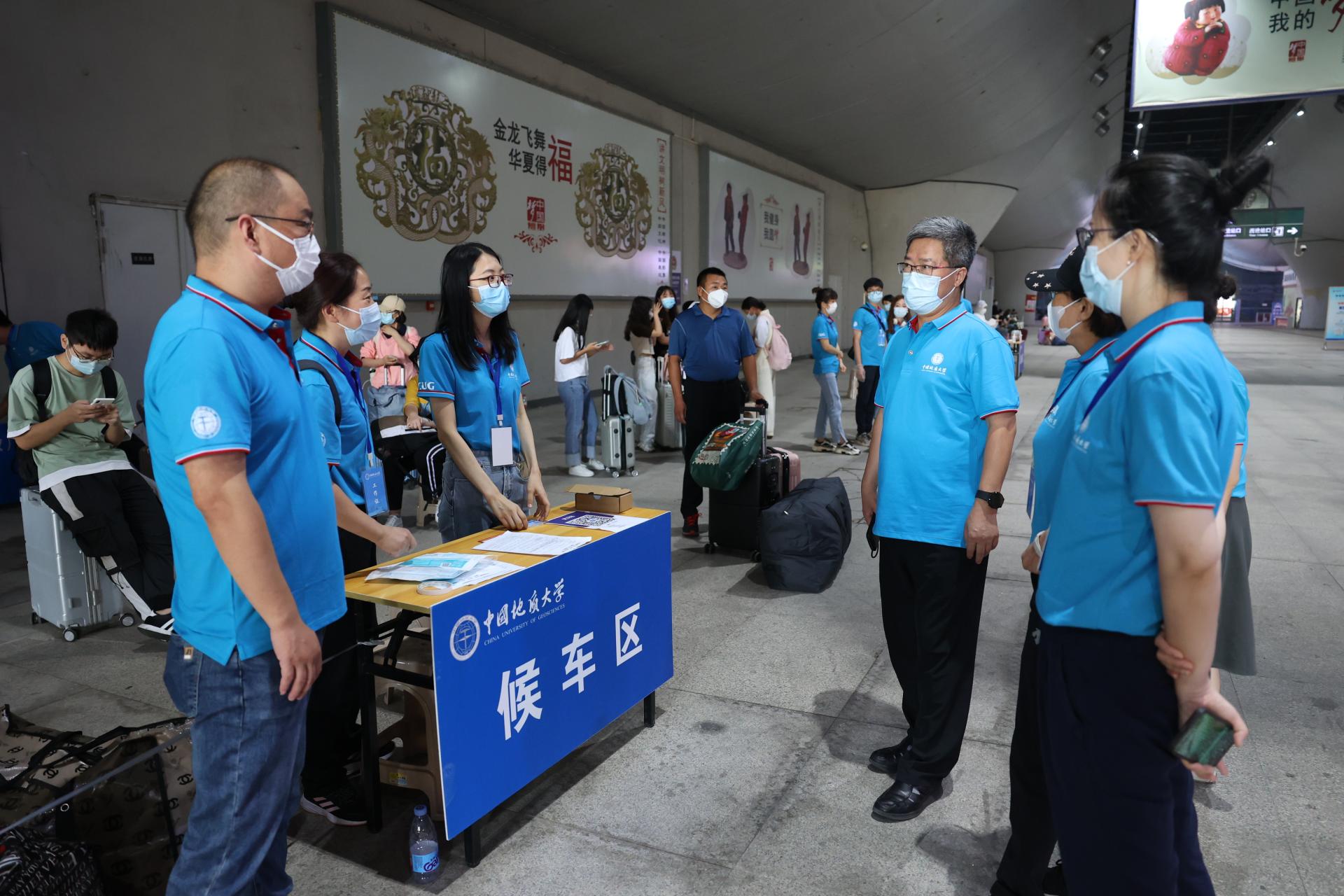為了迎接新生們的到來(lái),身著地大藍(lán)的173名教師黨員組成的志愿者隊(duì)伍和學(xué)生志愿者,早早來(lái)到武漢三大火車站,為新生們提供接站服務(wù),消毒、引導(dǎo)、搬運(yùn)行李,一切井然有序,一雙雙熱情的手,溫暖著新生及家長(zhǎng)們。