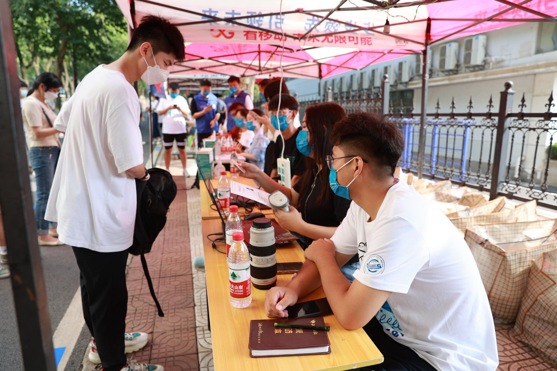 為了讓新生感受到“回家”的溫暖,各學(xué)院迎新點(diǎn)的老師、學(xué)長(zhǎng)學(xué)姐以及校志協(xié)的志愿者們齊上陣,他們認(rèn)真指引、耐心解答,幫忙運(yùn)送行李,帶著新生熟悉校園,提供最周到的服務(wù)。材料與化學(xué)學(xué)院2022級(jí)新生劉志國(guó)來(lái)自山東菏澤,他和姐姐一起從山東來(lái)到地大,“一進(jìn)地大,老師、志愿者和學(xué)長(zhǎng)學(xué)姐們熱情的幫助讓我感到非常溫暖。”