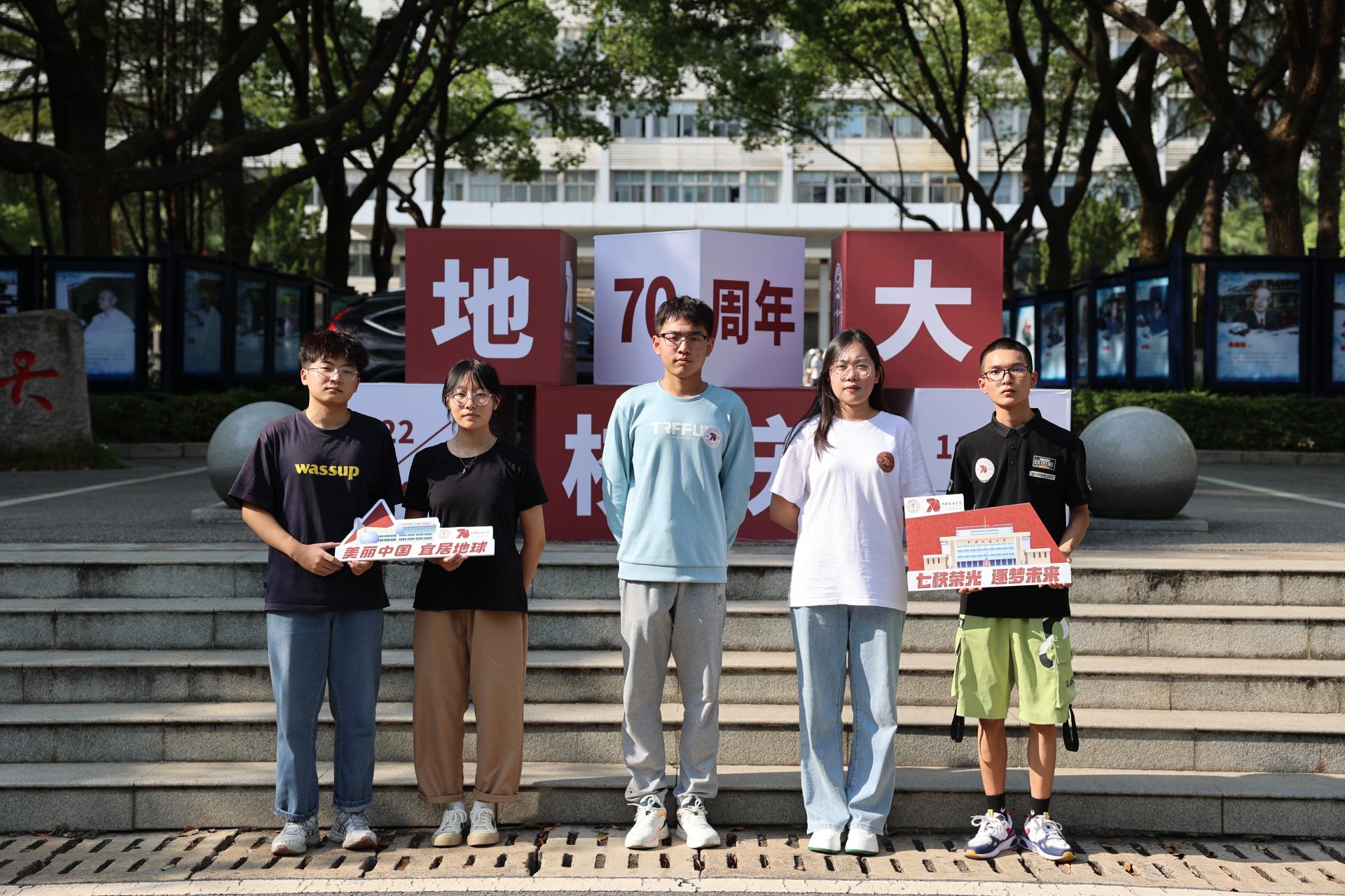 暑熱褪去,秋高氣爽,今年是地大70周年校慶,今天的地大攜以盛裝,熱鬧非凡,迎接著萌新CUGers。院士長(zhǎng)廊的校慶景觀迎來(lái)一波波合影打卡,操場(chǎng)上展示著“上天入地下海登極”景觀和校慶吉祥物,