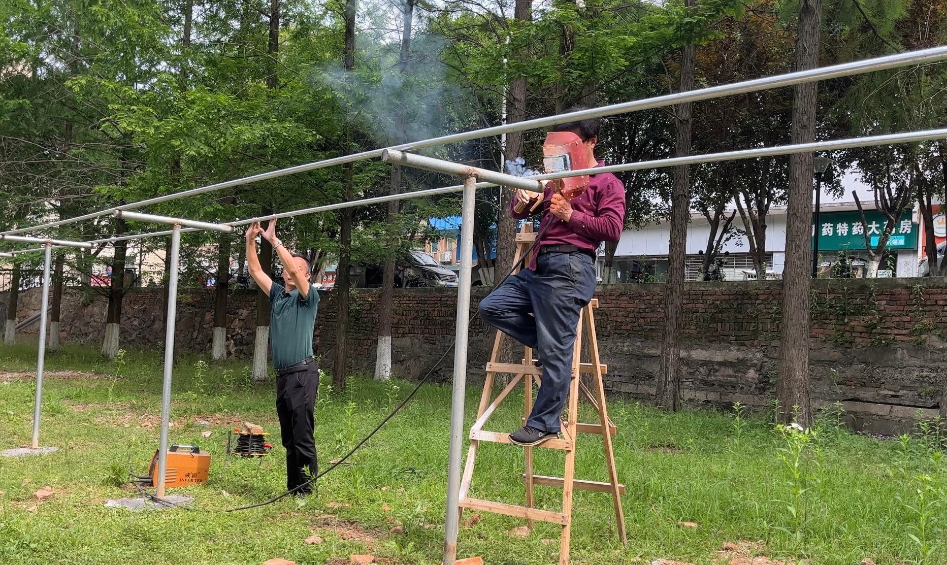 “南望山校區北區部分學生公寓周邊曬場數量較少,能否增加晾衣架數量呢?”近日,接到學生要求增設公共晾衣架的電話,學生住宿服務中心立刻組織維修部專業人員,現場踏勘,制定安裝計劃,報學校審批后,維修師傅從切割鋼管、水泥澆筑、立桿焊接、刷漆噴漆等入手,力求做好做精每個細節,總共切割鋼管42根,焊接44處,歷時3天,在北區13棟、14棟學生公寓后增設了30多米的晾衣架,滿足了附近學生的晾曬需求,提高了服務質量。