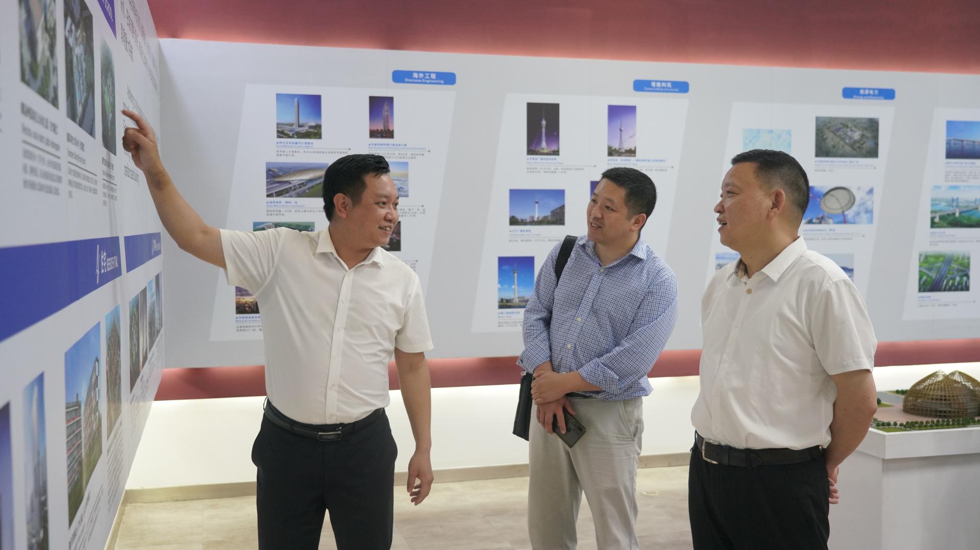 調研團一行先后參觀了蔡甸城市客廳項目部、大區陳列室和鋼結構制造廠,觀看了中建科工企業宣傳片、灣區會展國際酒店項目紀錄片。