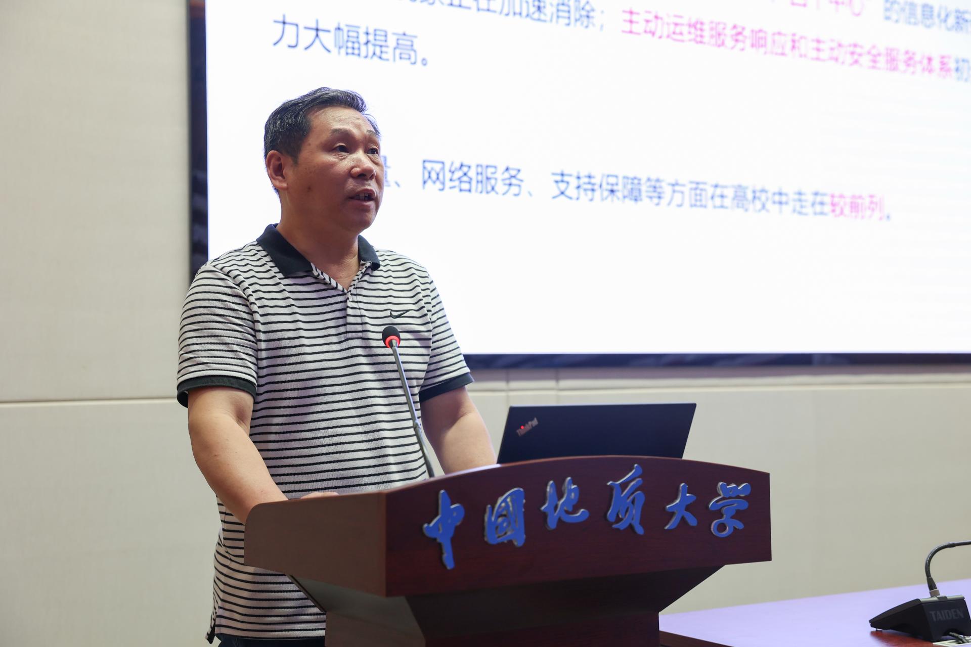 地大新聞網訊(通訊員 高浪 攝影 劉文涵)5月31日,學校在南望山校區東區教學綜合樓A0116會議室召開網絡安全和信息化素養提升專題培訓會。網絡安全和信息化工作領導小組成員、各二級單位信息化工作分管領導參加會議。校黨委副書記王林清主持會議。