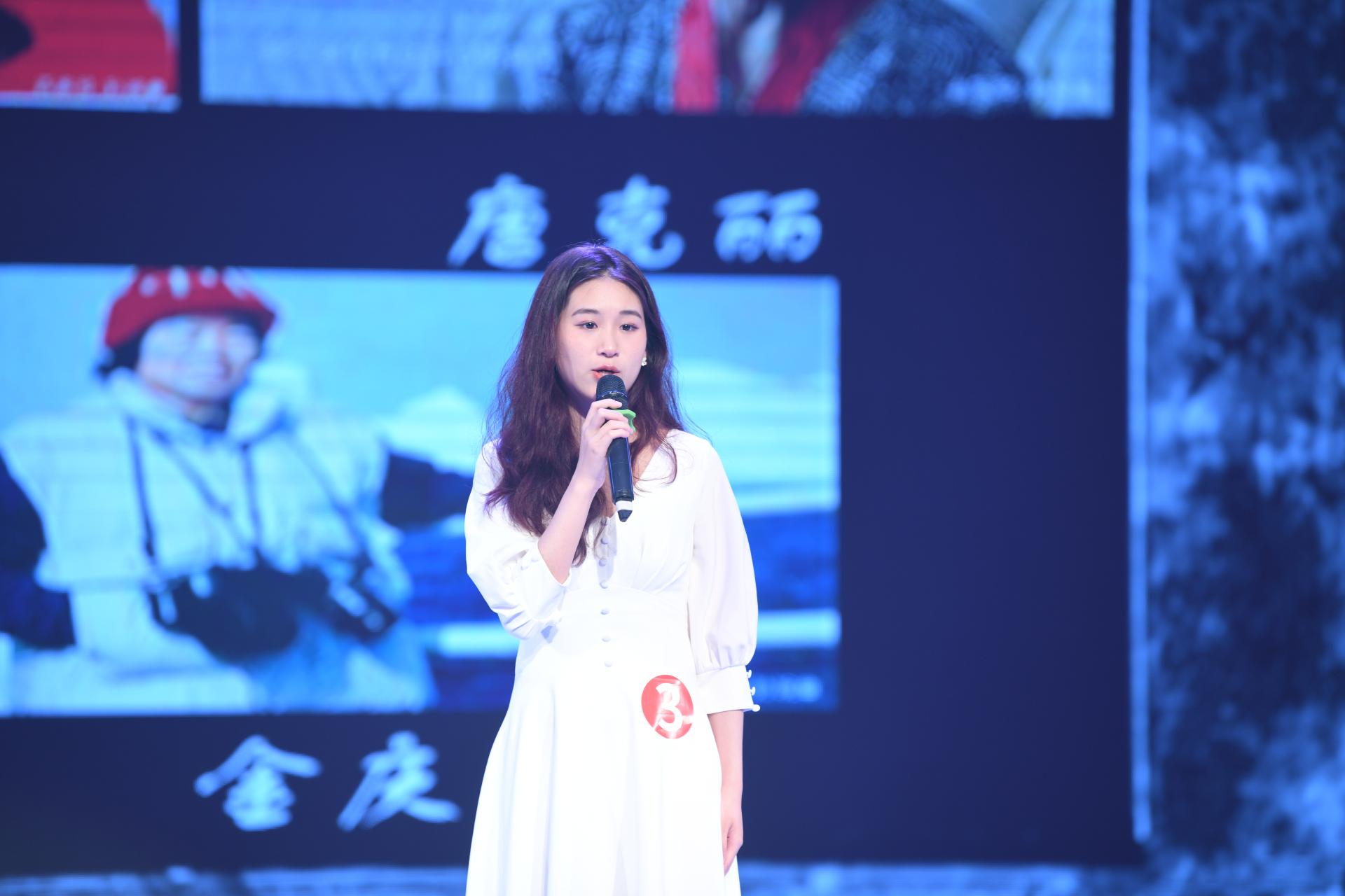 大賽的第一個(gè)環(huán)節(jié)是自備主持,考核選手的獨(dú)立主持能力。其中,地球物理與空間信息學(xué)院的孟欣通過介紹,為核酸檢測(cè)志愿服務(wù)的地大社區(qū)黨員干部,呼吁學(xué)習(xí)他們沖鋒在前的精神;經(jīng)濟(jì)管理學(xué)院的曾睿介紹了我校校友張彌曼院士的傳奇經(jīng)歷,號(hào)召大家向光而行,向優(yōu)秀校友學(xué)習(xí);資源學(xué)院的高一哲講述了各個(gè)時(shí)代地大青年的精神面貌;藝術(shù)與傳媒學(xué)院的趙佳桐對(duì)地質(zhì)“三大件”進(jìn)行講解,詮釋出校徽的深刻內(nèi)涵……該環(huán)節(jié)內(nèi)容豐富,在場(chǎng)評(píng)委及觀眾反響熱烈。
