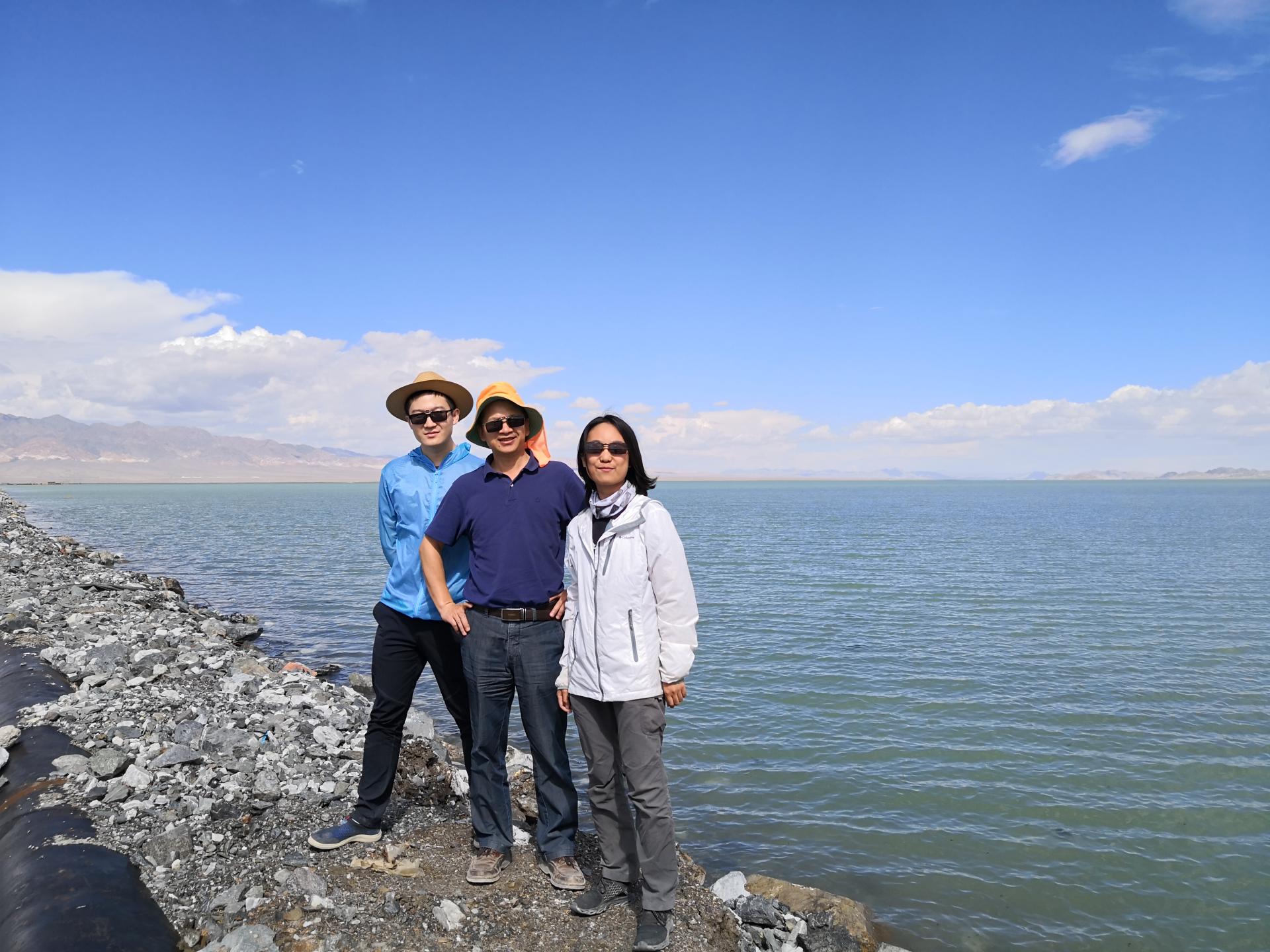 錢煜奇(左一)與導師肖龍(中)在柴達木進行類火星地貌考察