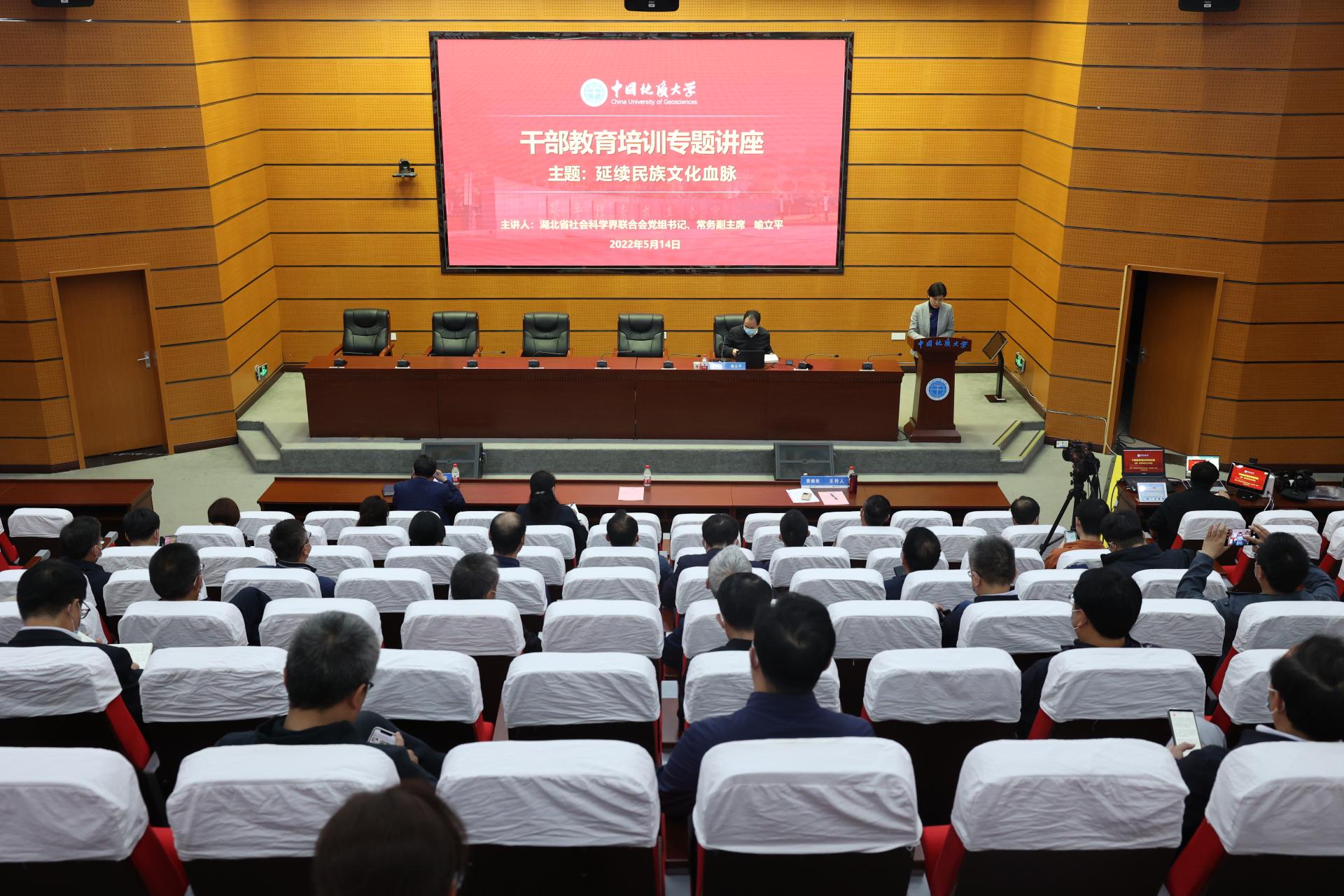 地大新聞網訊(記者雷龔鳴)5月14日,學校開展文化建設專題講座干部隊伍教育培訓,湖北省社會科學界聯合會黨組書記、常務副主席喻立平受邀作專題講座。在校校領導,黨委常委,校長助理,全體科級及以上干部代表線上線下參加培訓。