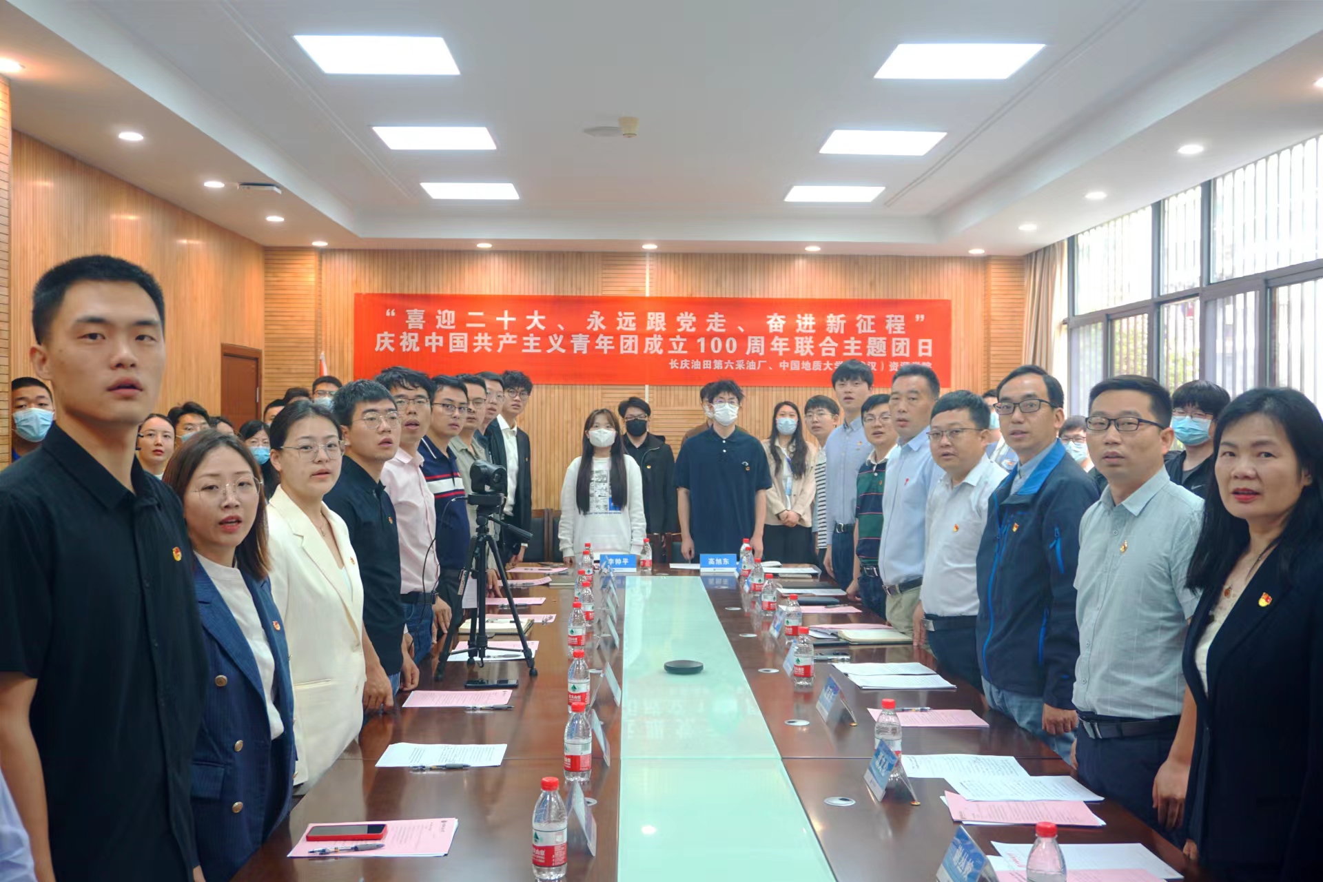 地大新聞網訊(通訊員 劉明輝 霍少孟 劉睿 劉前 攝影 樓永航 羅鑫 潘仕卓)5月15日,我校資源學院、中國石油天然氣股份有限公司長慶油田分公司第六采油廠線上聯合開展慶祝中國共產主義青年團成立100周年主題團日活動。會上雙方簽署了產教研融合實踐基地共建協議,舉行“資源學子西部行”社會實踐團出征儀式。