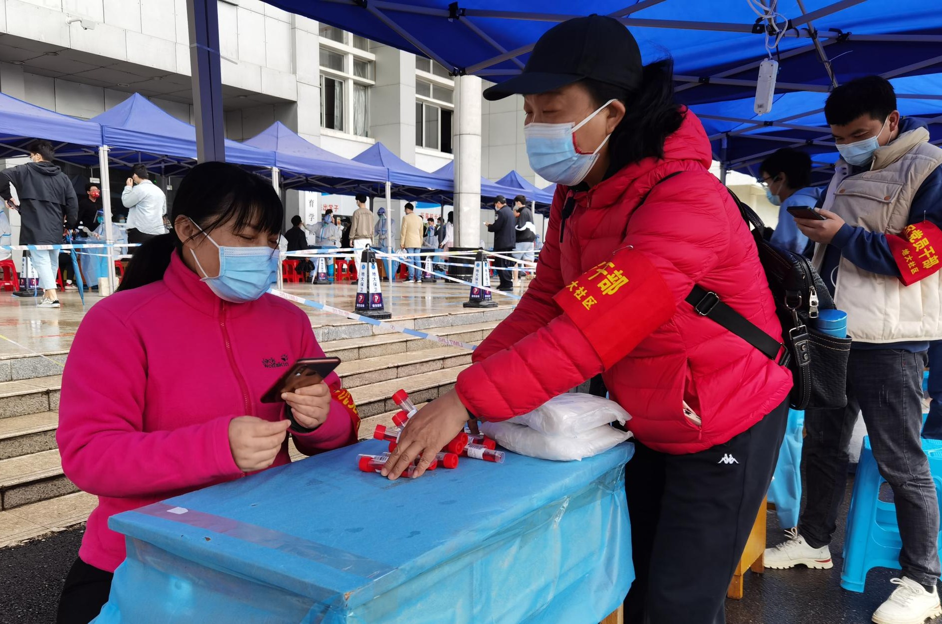 關(guān)磊老師在核酸檢測現(xiàn)場
