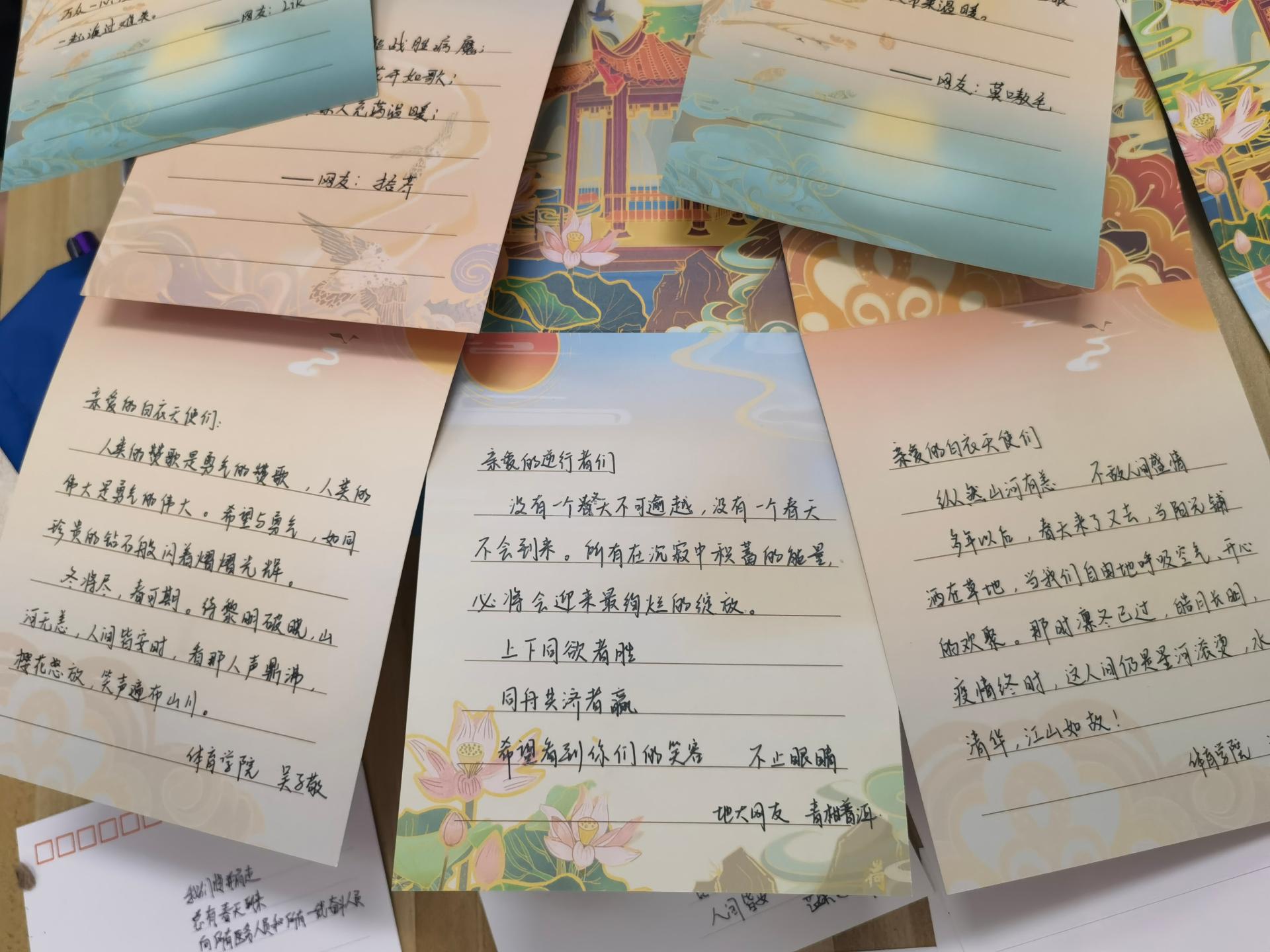地大新聞網訊(通訊員 胡新月 任可盈)近日,因學校周邊疫情影響,校園疫情防控形勢嚴峻,校黨委高度重視,統一部署,學校各部門及學院積極做好疫情防控期間學生教育引導工作。4月26日、28日,在藝媒學院黨委副書記邊建華和外國語學院黨委副書記胡文勤兩位指導老師的帶領下,我校大學生創業團隊“地心引力”文創工作室的十幾位成員,先后前往南望山校區北區、東區核酸檢測地點及西區保衛處,給奮戰在疫情防控中的醫護人員、志愿者和安保人員,送上一份特殊的禮包:一杯溫暖的奶茶、一份地大主題的文創作品和一張愛心賀卡,以此表達敬意。