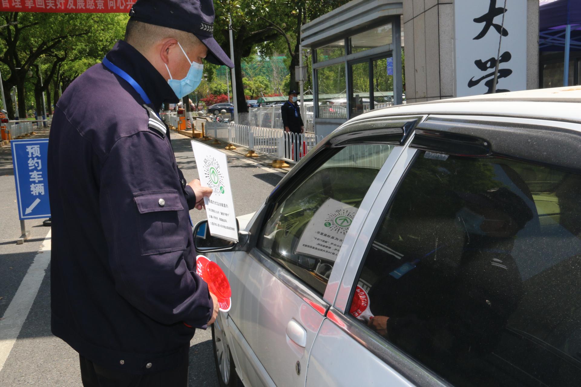 東一門安保人員檢查進校車輛人員健康碼、行程卡 許微 攝