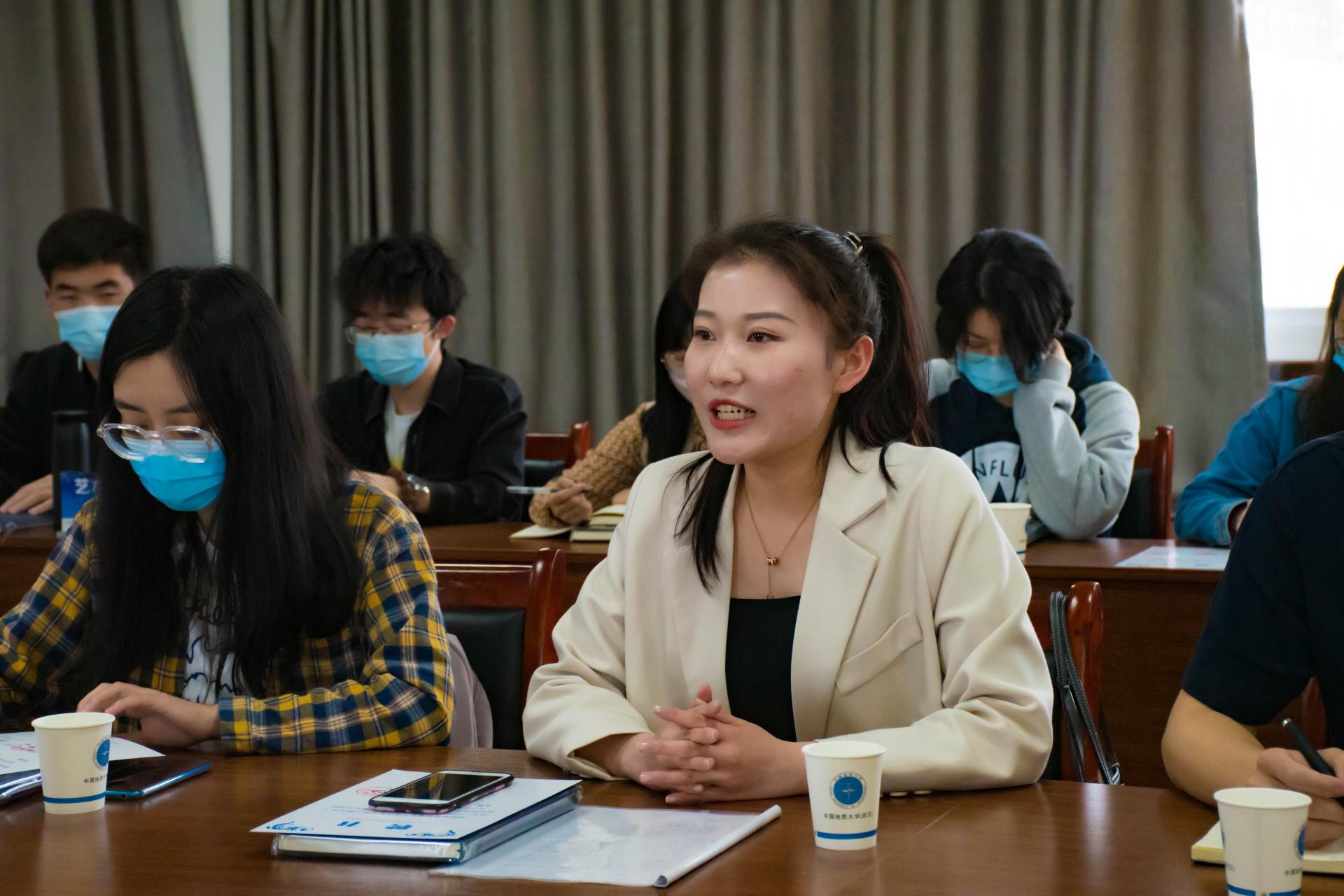 馬克思主義學院宋涵彬作為學生代表,從態度、力度和溫度三個方面匯報了在資源學院做研究生兼職輔導員的心得體會。她認為,擔任研究生兼職輔導員是將專業理論學習與工作實踐結合,提升專業素質的一次寶貴機會。