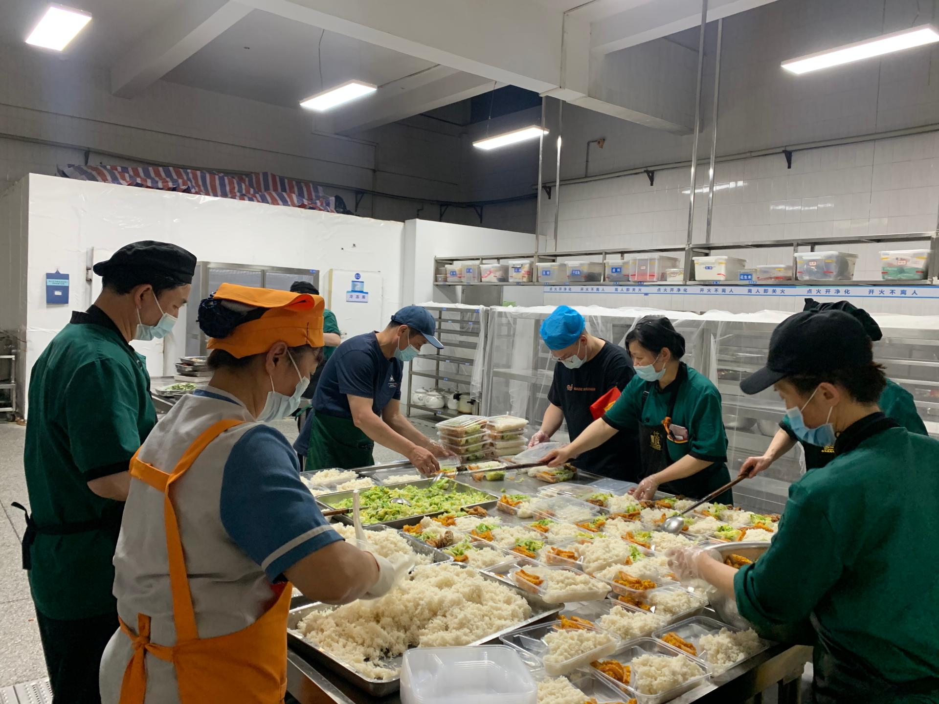 為保障學(xué)生正常用餐,飲食服務(wù)中心召集員工推遲下班,在時(shí)間緊、任務(wù)重的情況下,爭(zhēng)分奪秒做飯、打包、送餐,4月9日晚餐,為學(xué)生、醫(yī)護(hù)人員、保衛(wèi)值守人員和樓管員等送餐上千份。4月10日,為不耽誤食堂早餐的正常供應(yīng),飲食服務(wù)人員凌晨4點(diǎn)開(kāi)始制作早餐,7點(diǎn)半便將上千份早餐打包配送到了有關(guān)樓棟。4月10日全天,飲食服務(wù)中心配送早、中、晚餐共計(jì)5000多份。