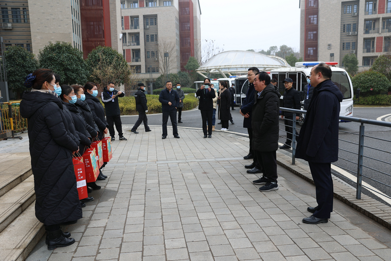 副校長賴旭龍、劉杰帶隊(duì)前往未來城校區(qū),開展安全檢查及春節(jié)慰問,先后到未來城校區(qū)北門、監(jiān)控中心、能源中心、隔離點(diǎn)、學(xué)一組團(tuán)、學(xué)一食堂開展安全檢查,并代表學(xué)校向堅(jiān)守工作崗位的職工送上慰問,詳細(xì)了解大家的工作情況,感謝他們?yōu)閷W(xué)校后勤保障、疫情防控等各項(xiàng)工作做出的努力和貢獻(xiàn),希望大家堅(jiān)守崗位,認(rèn)真履行職責(zé),確保假期校園安全穩(wěn)定。