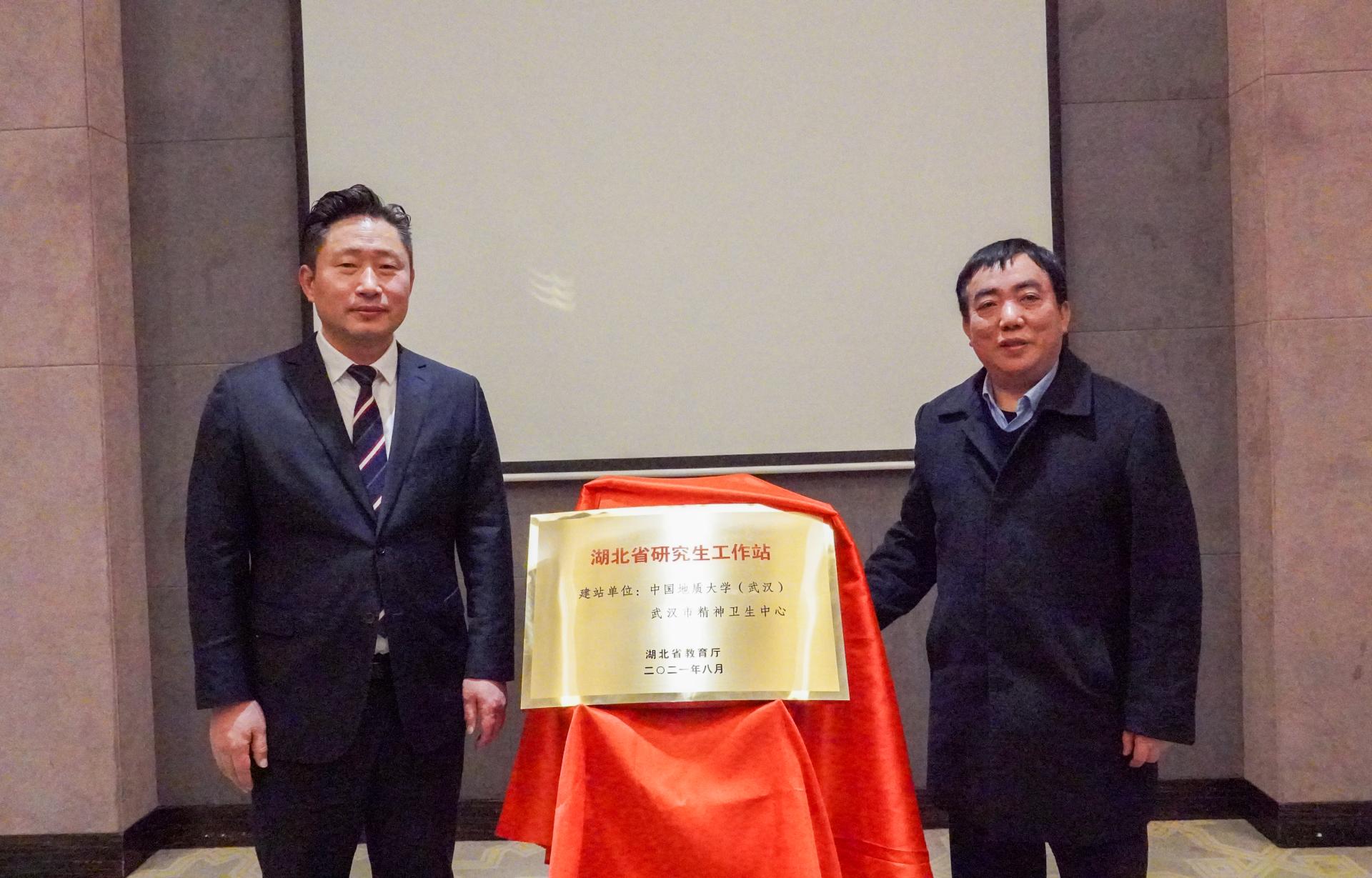 地大新聞網(wǎng)訊(通訊員劉想 劉俊發(fā) 解瑾)1月7日,我校與武漢市精神衛(wèi)生中心合作建設(shè)的湖北省級研究生工作站掛牌儀式暨心理健康與交叉學科學術(shù)交流會舉行。副校長賴旭龍,武漢市精神衛(wèi)生中心院長李毅參加儀式并為工作站揭牌。武漢市精神衛(wèi)生中心副院長鐘寶亮主持揭牌儀式。