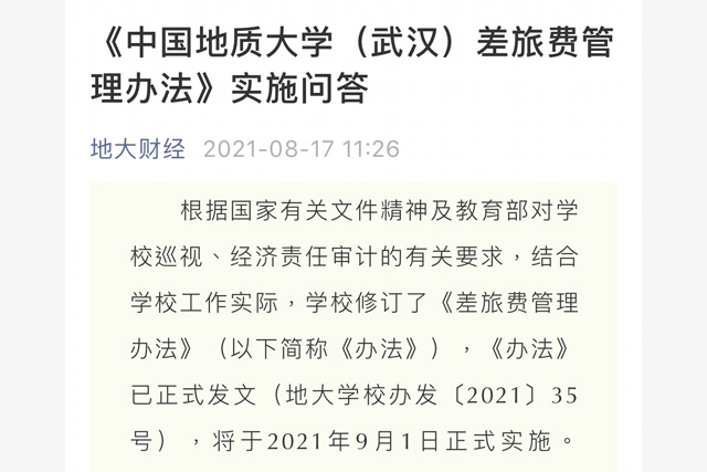 工作平臺升級改造,網上辦事能力快速提升。適應機構改革工作新要求,財務與資產管理部整合財務、國資監管辦、采購與招標管理中心等3個原單位網站,以便民利事為宗旨,優化部門網頁風格模式,讓財務服務各項業務界面更加明晰、操作更加便捷。打破信息隔閡,重點升級了網上報賬系統、網上申報系統、網上查詢系統,推進賬務系統與學校大型儀器設備平臺進行數據對接。全面升級財務網上報賬系統模塊,優化提升差旅費報銷模塊。同時,為實現與新修訂出臺的《中國地質大學(武漢)差旅費管理辦法》緊密對接,網上報賬系統將新的住宿標準內置于系統,科研出差實行住宿包干模式,有效控制住宿標準,規范費用支出,方便老師填報,顯著提升教職工財務服務便捷度、滿意度。