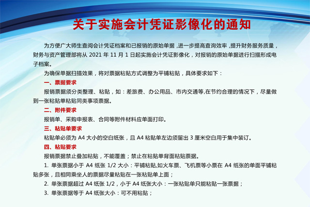 憑證影像化應用落地,查詢審計業務提質增速。為了解決財務檔案室空間有限,師生查閱紙質憑證耗時耗力的問題,財務與資產管理部主動調研,前往武漢理工大學等兄弟院校學習交流,了解與掌握先進經驗,與天財公司合作推動財務憑證影像化工作。經過多次測試,憑證影像化工作已具備較完善的軟硬件條件,并于2021年11月1日實施推行,效果良好。工作中,該系統利用影像設備對憑證原始單據與財務憑證對應拍照存檔,將會計憑證、附件、會計檔案全部上傳到電子影像管理系統,實現對電子數據和實物單據的可追溯性和可控性管理,所有會計憑證在云端備份,不僅不會丟失,還大大提升了會計檔案管理的安全性和可靠性。同時,該系統還利于票據監控、查詢,大幅度降低了跨校區審批、會計檔案調閱的工作成本,方便師生隨時隨地登陸報賬系統查閱以往報賬憑證信息,為影像查閱、調檔、財務審計、科研審計工作帶來極大的便利。