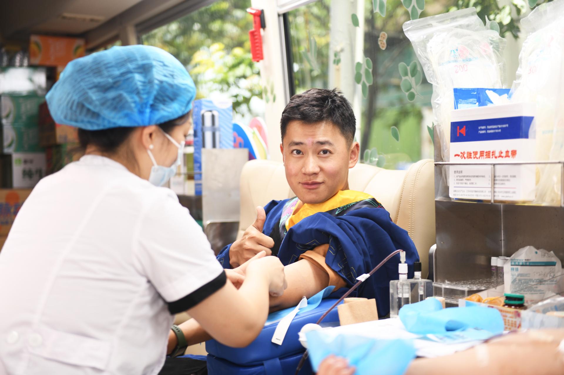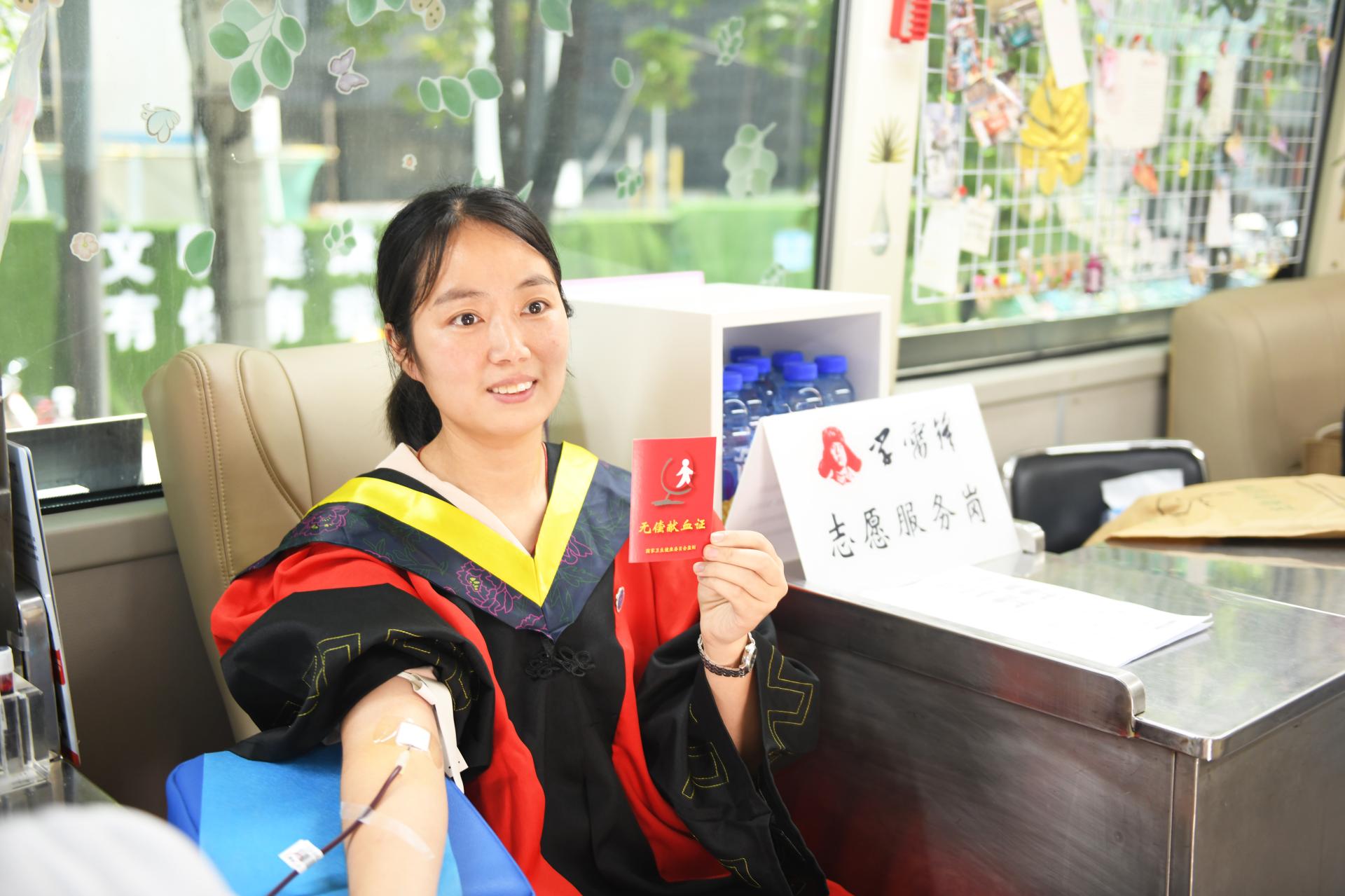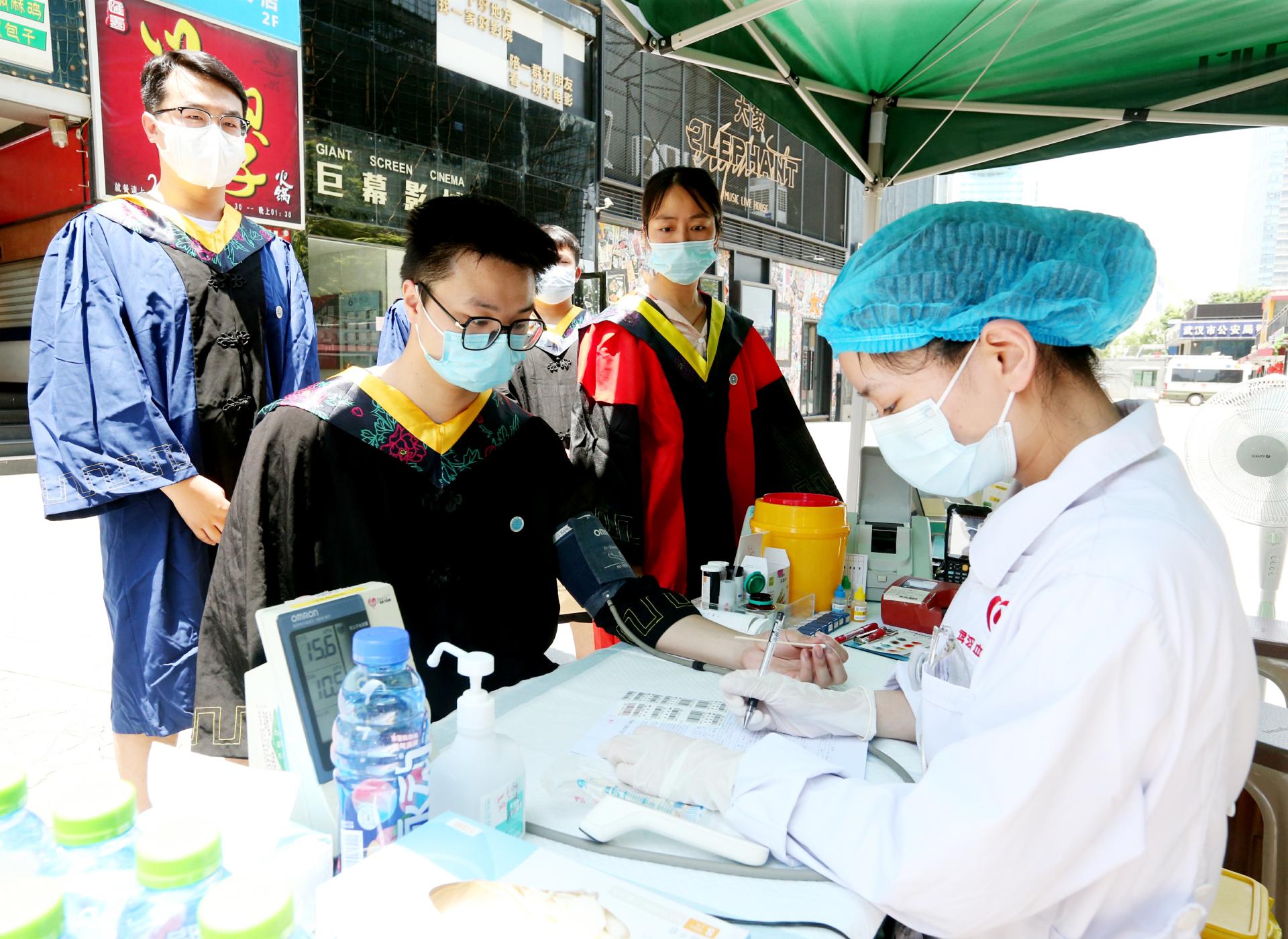 地大新聞網訊(記者 張玉賢)“畢業前,我要再獻一次血,為大學生活畫上圓滿的句號!”6月14日,我校工程學院6名畢業生身著學位服,不約而同來到學校附近的光谷獻血點,參加無償獻血。雖然武漢夏天的陽光“毒辣”,但阻擋不了畢業生的拳拳愛心。