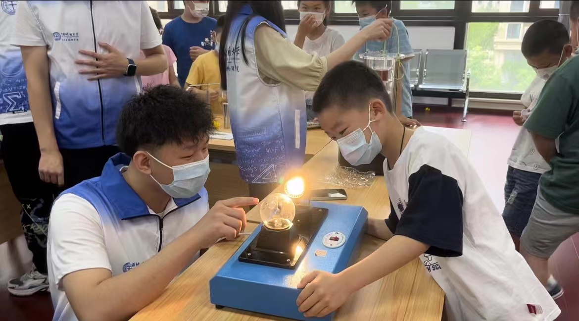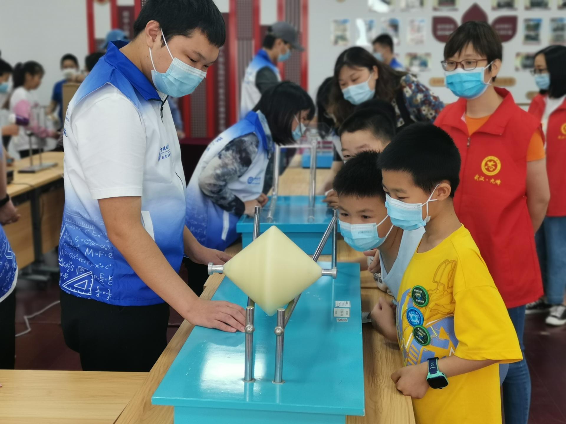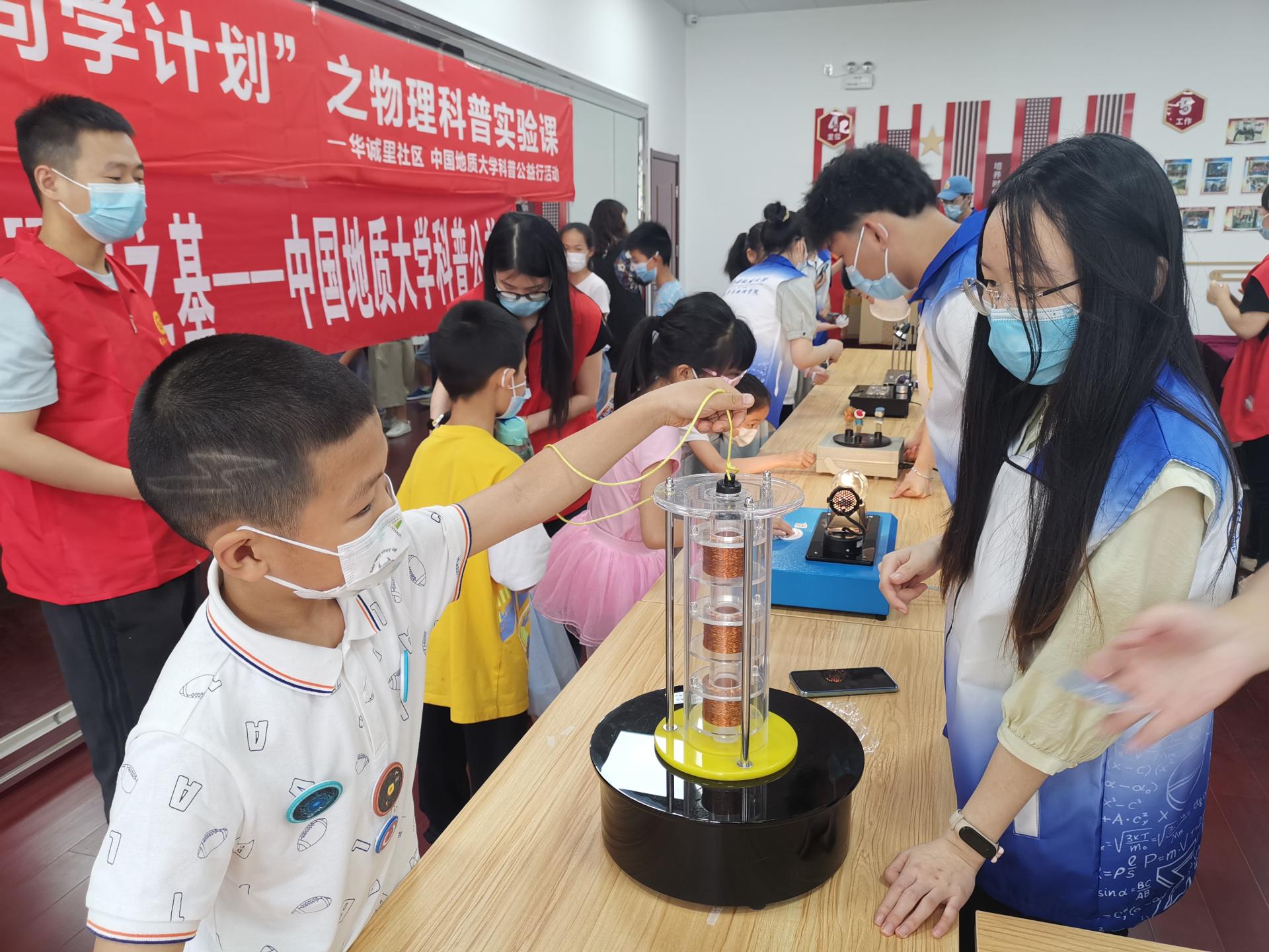地大新聞網訊(通訊員 鄒夢夢)“我印象最深的是椎體上滾的實驗,原來我的眼睛被騙了,太神奇了!以后哥哥姐姐們能不能多來我們上課?”就讀于光谷十七小四年級的龔熙桐,向帶隊的孫宇濤老師說。6月12日,我校學生黨員科普公益行走進武漢市東湖高新區九峰街華誠里社區,開展主題為“格物致理,春風化雨”的青少年物理科普日活動。