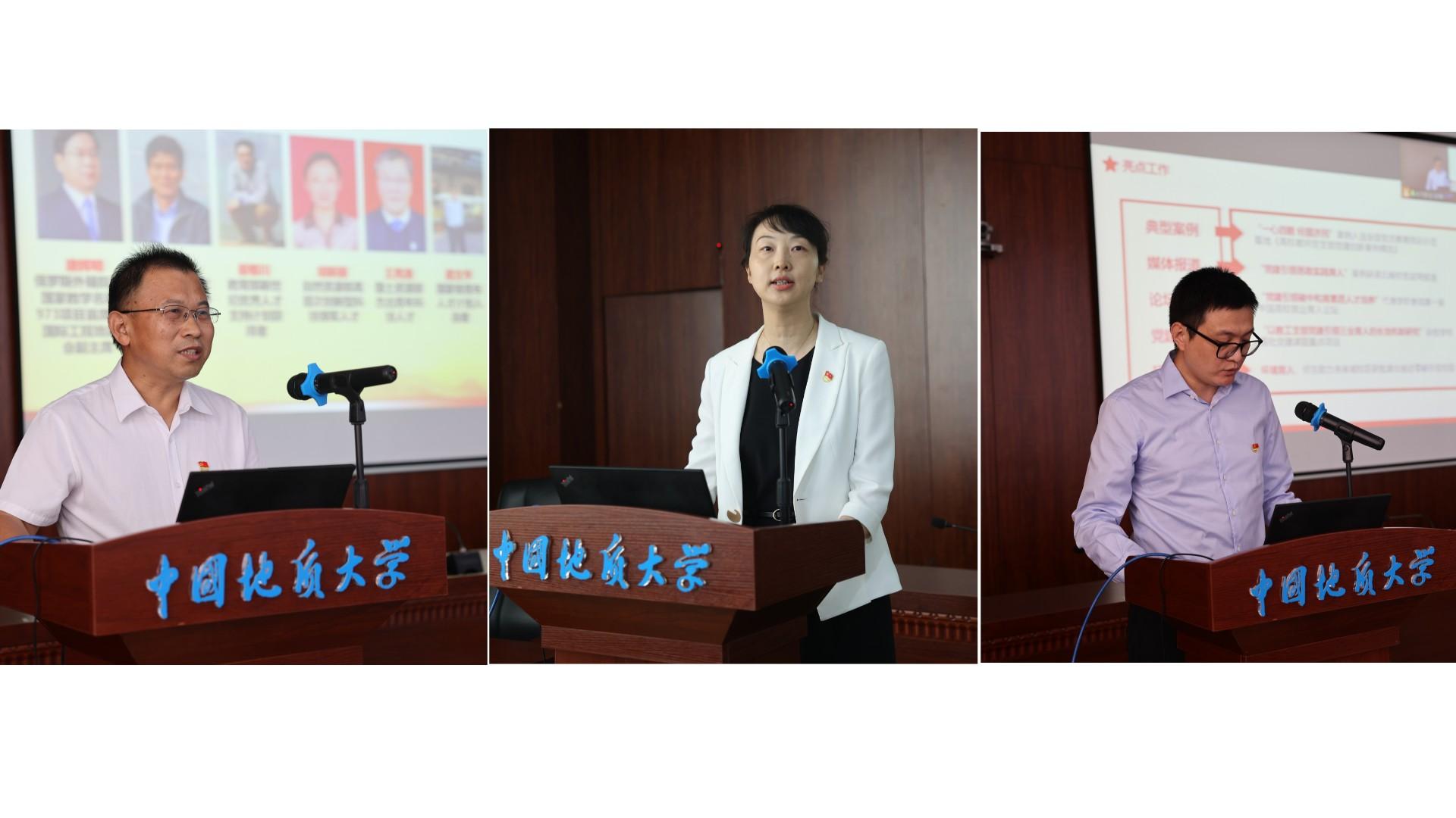 參會人員分成四組,就“如何有效加強黨建品牌建設,促進支部黨建工作與業務工作融合發展”進行了討論和交流。地球物理與空間信息學院應用地球物理系黨支部書記嚴哲、計算機學院計算機應用系黨支部書記武云、珠寶學院寶石系黨支部書記張鵬飛、后勤黨委接待服務中心黨支部書記吳華玉,分別代表所在小組進行交流成果匯報。4位黨支部書記的匯報為參會人員相互學習,積極探索新時代高校教工黨支部建設提供了新思路、新方法。