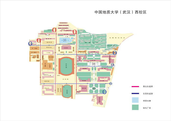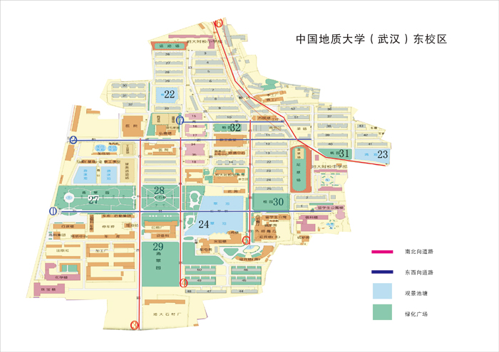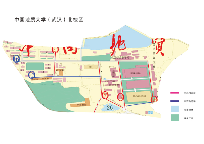 全校共計22條道路。東校區7條、西校區9條、北校區6條(見附圖標識)。