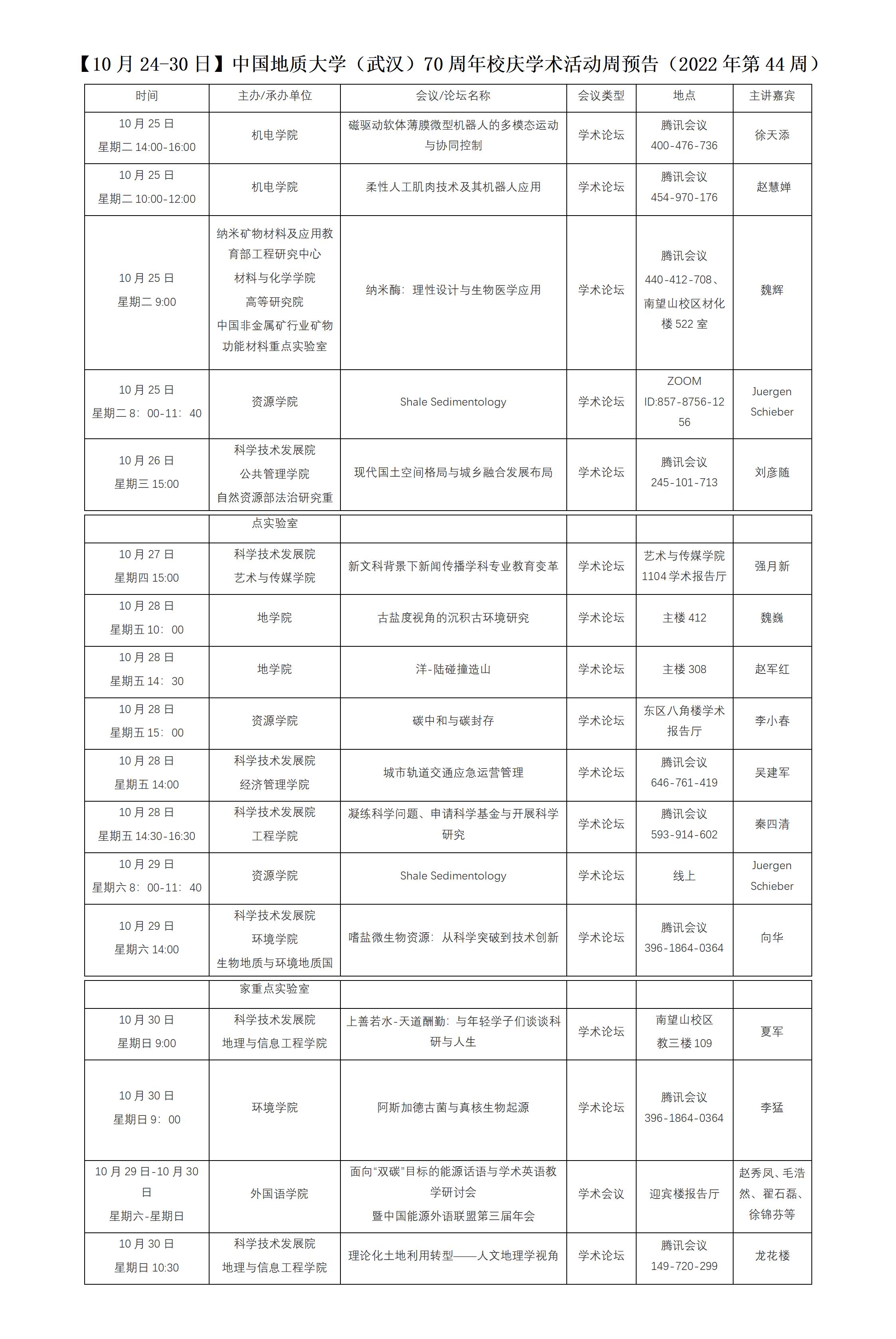 【10月24-30日】中國地質大學(武漢)70周年校慶學術活動周預告(2022年第44周)