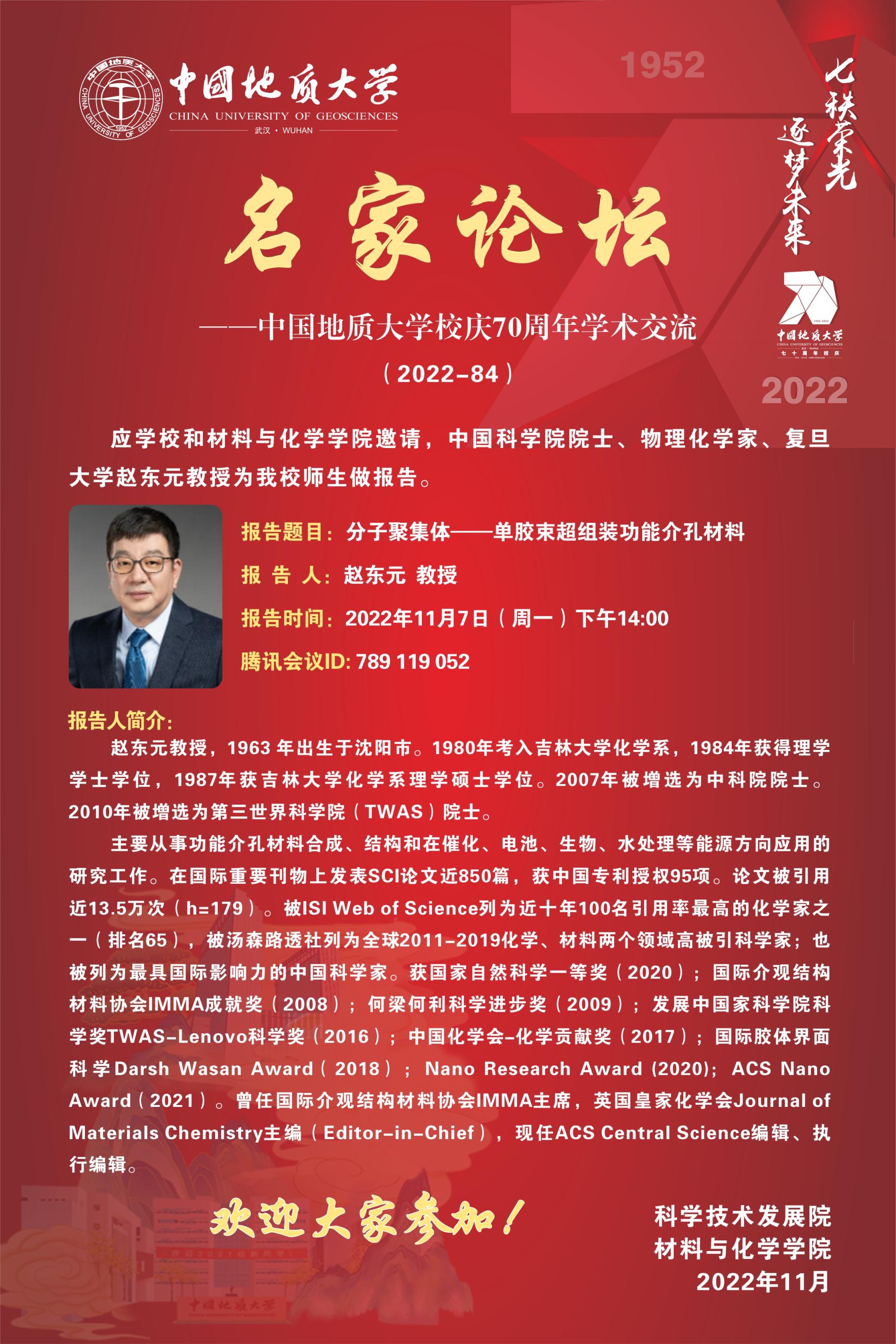 【11月7日】名家論壇:分子聚集體——單膠束超組裝功能介孔材料