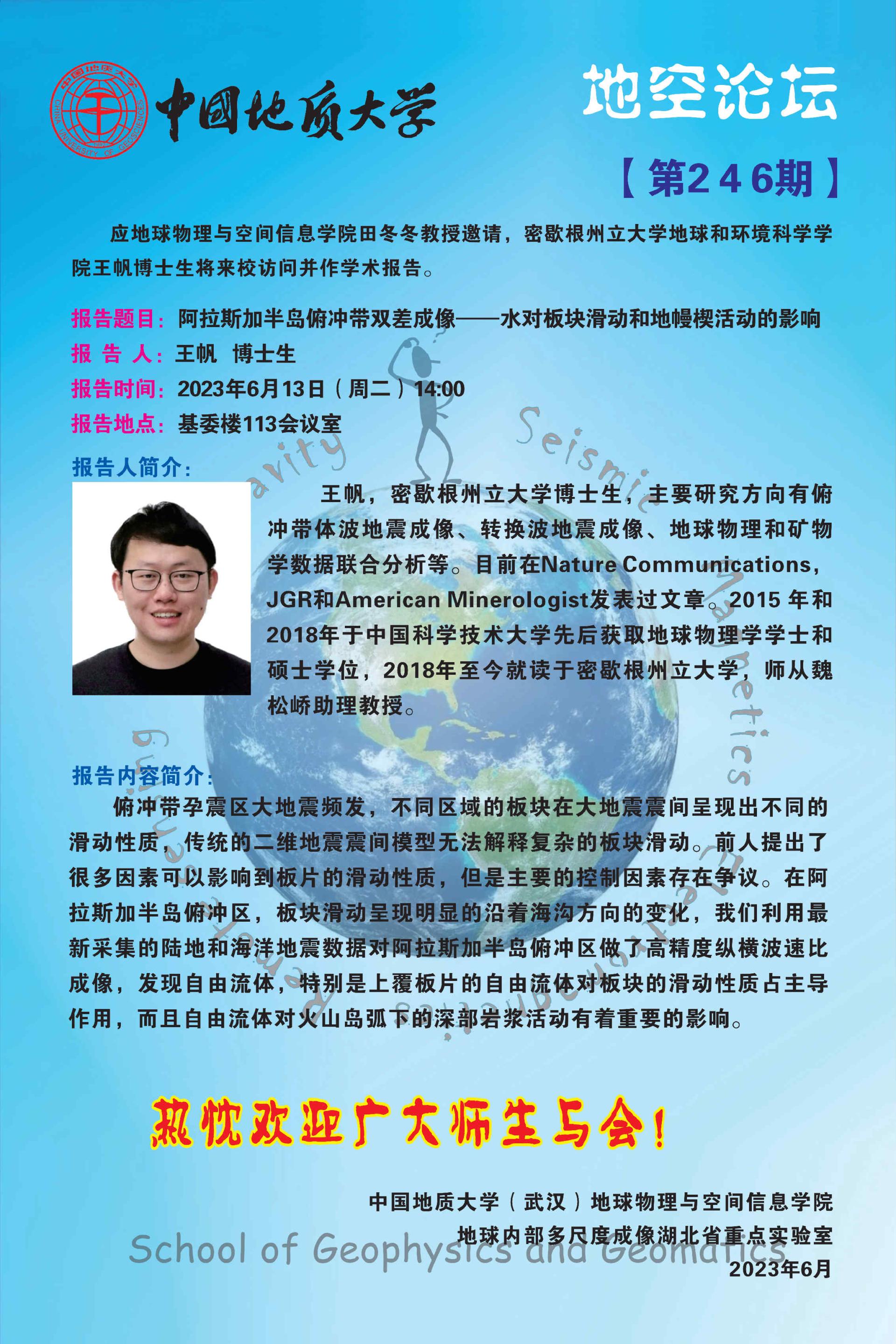 【6月13日】地空論壇:阿拉斯加半島俯沖帶雙差成像——水對板塊滑動和地幔楔活動的影響