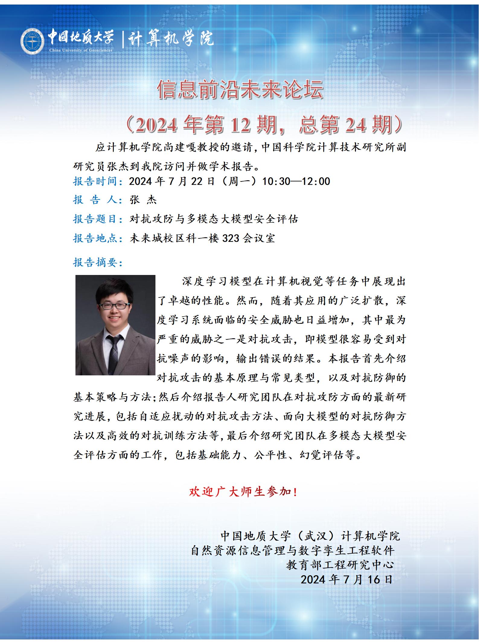 【7月22日】信息前沿未來論壇:中國科學(xué)院計(jì)算技術(shù)研究所張杰副研究員學(xué)術(shù)報(bào)告