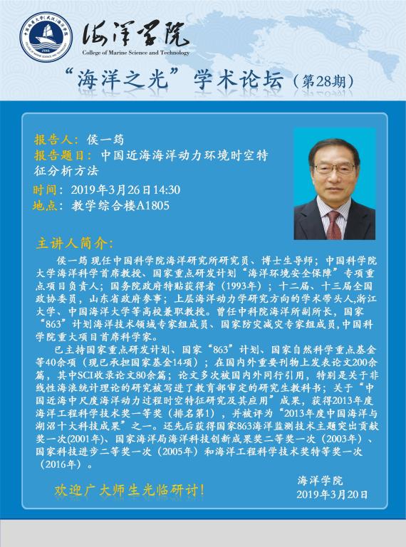[3月26日]海洋之光學術論壇:中國科學院海洋研究所研究員侯一筠學術報告