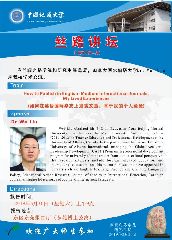 [3月30日]絲路講壇:加拿大阿爾伯塔大學(xué)Dr.Wei Liu學(xué)術(shù)報告
