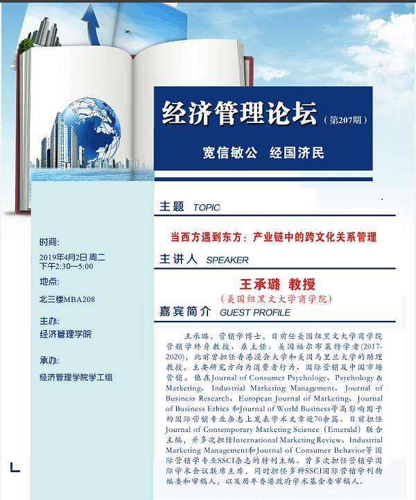[4月2日]經(jīng)濟(jì)管理論壇:美國紐黑文大學(xué)商學(xué)院王承璐教授學(xué)術(shù)報告