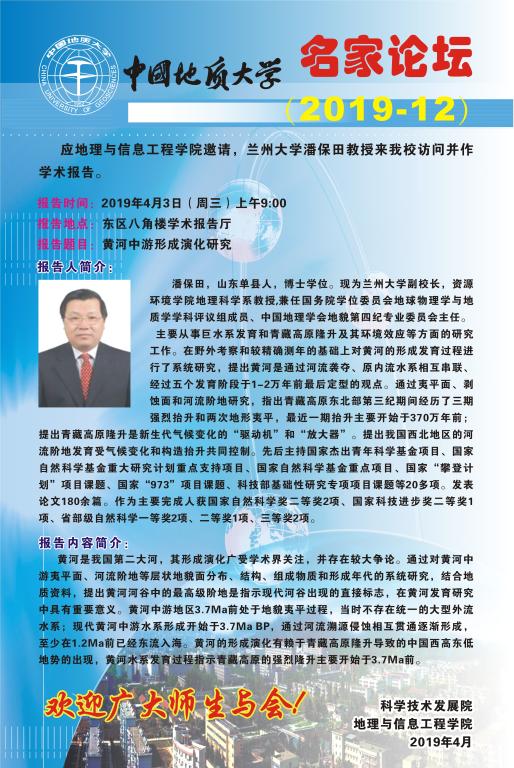 [4月3日]名家論壇:蘭州大學潘保田教授學術報告