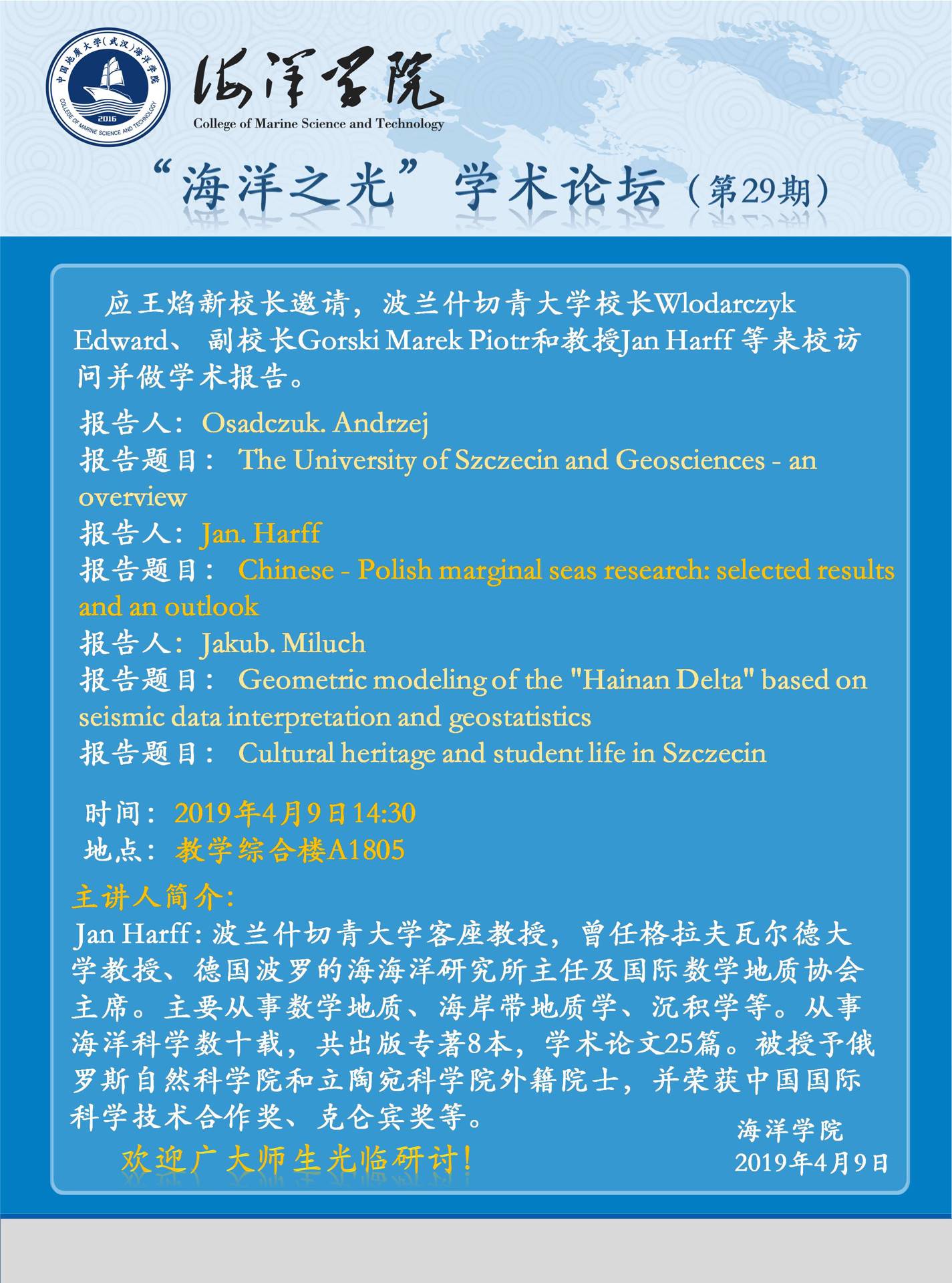 [4月9日]“海洋之光”學(xué)術(shù)論壇:波蘭什切青大學(xué)校長(zhǎng)Wlodarczyk Edward、副校長(zhǎng)Gorski Marek Piotr和教授Jan Harff學(xué)術(shù)報(bào)告
