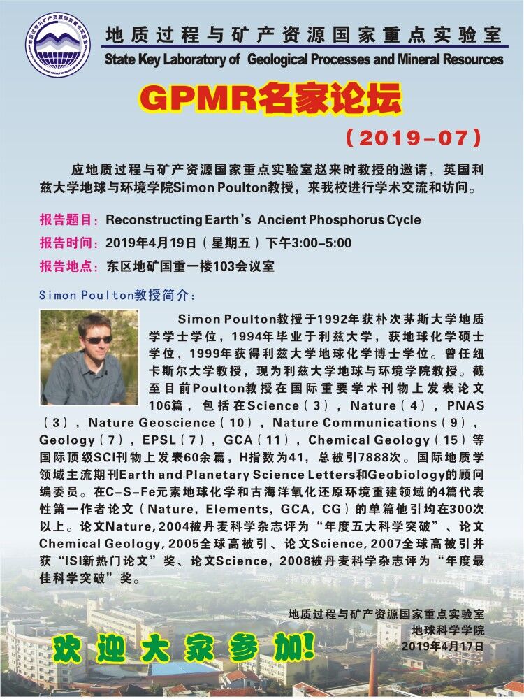 [4月19日]GPMR名家論壇:英國利茲大學(xué)地球與環(huán)境學(xué)院Simon Poulton教授學(xué)術(shù)報告