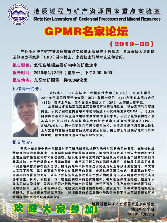 [4月22日]GPMR名家論壇:日本愛媛大學地球深部動力研究所(GRC)孫偉博士學術報告