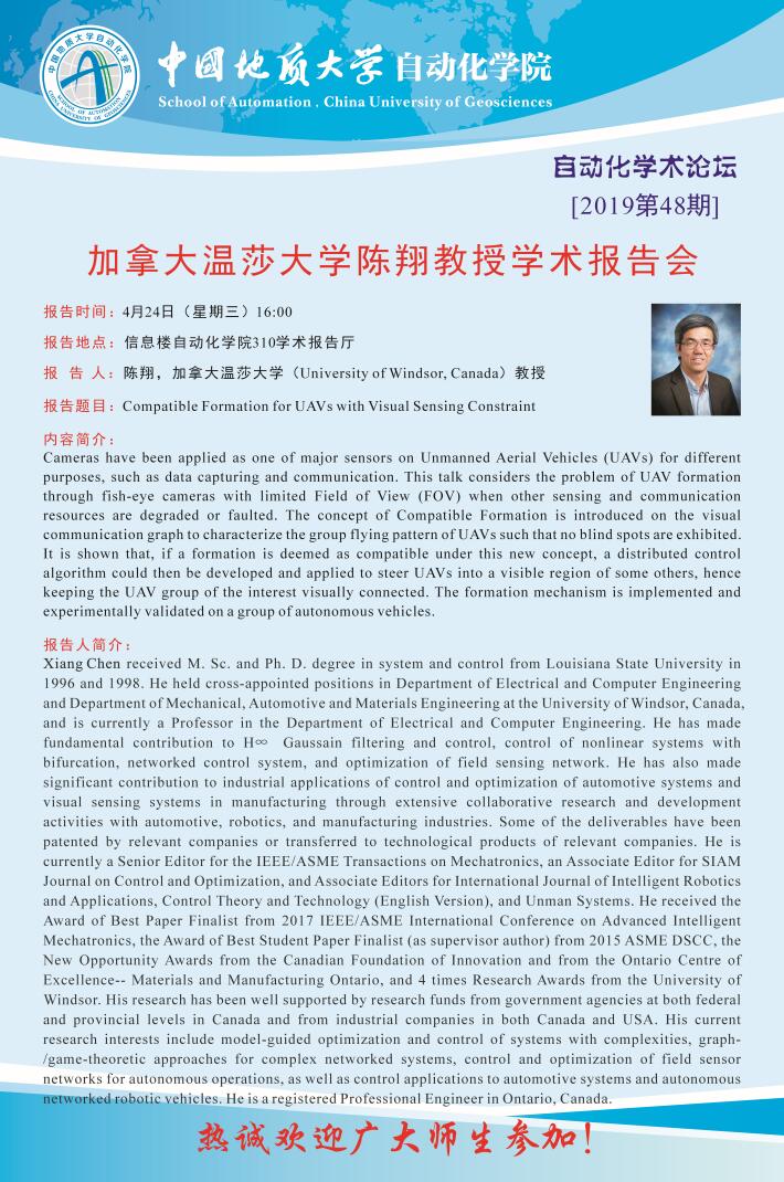 [4月24日]自動化論壇:加拿大溫莎大學陳翔教授學術報告