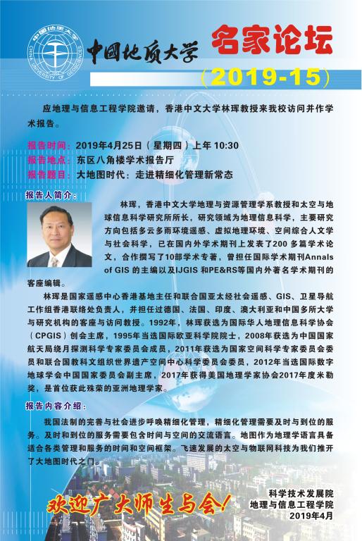 [4月25日]名家論壇:香港中文大學林琿教授學術報告(大地圖時代:走進精細化管理新常態)